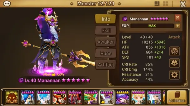 Asia ⸱ 25 LVL+6*-11+2 LD ⸱ Manannan + Ritsu + 5 Nat5 + 25 LVL starter + Teshar + Vanessa + Woosa