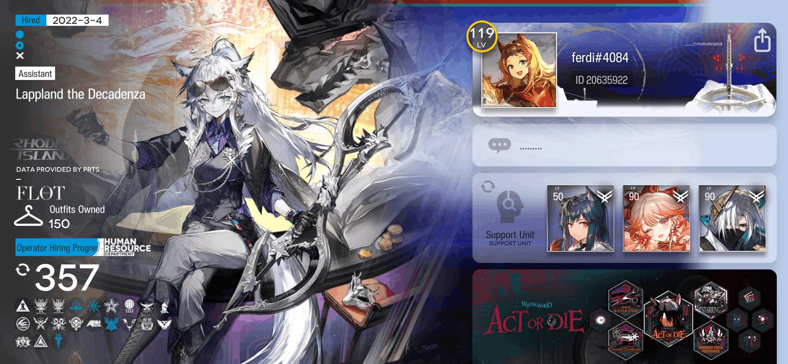 ✧・゚:*✧ Arknights ⸱ Global Lv 119, 90 6-Star, 23 Limited Operators, 150 Outfits ✧・゚:*✧ Your Deal Is Leaving... ✧・゚:*✧ (#E67130847f)