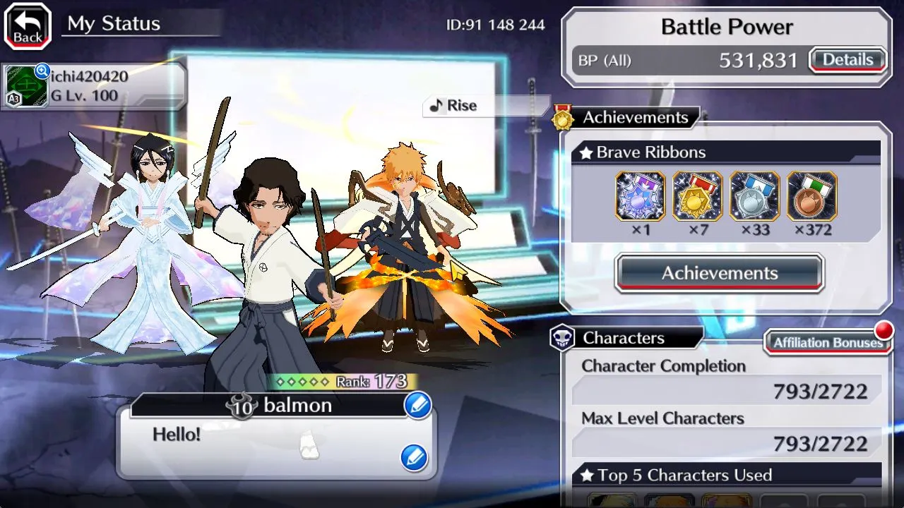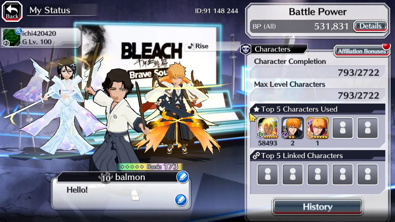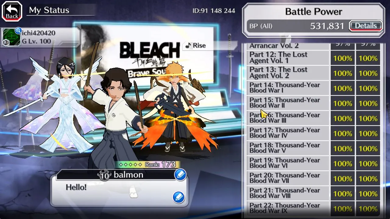 [GLOBAL]42 Orbs|Rukia,Ichigo 10th Aniv,SoulReper[Shunsui,Jushiro],TYBW25 Jushiro,Renewd Byakuya,Etc|3,8 AccTic|Klab ID(BBBS2502)