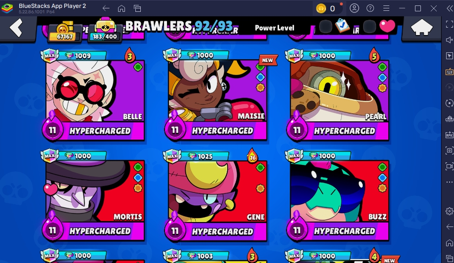 10 TITLES â 240 SKINS â 67.100 TROPHY â 92 BRAWLERS â 24 MAX â 15 HYPERCHARGED â CURSED KENJI â GUARD RICO â CUPID PIPER â  SURGE  KONG â OCTO FANG â SPIKE â LEGENDARY â LEON