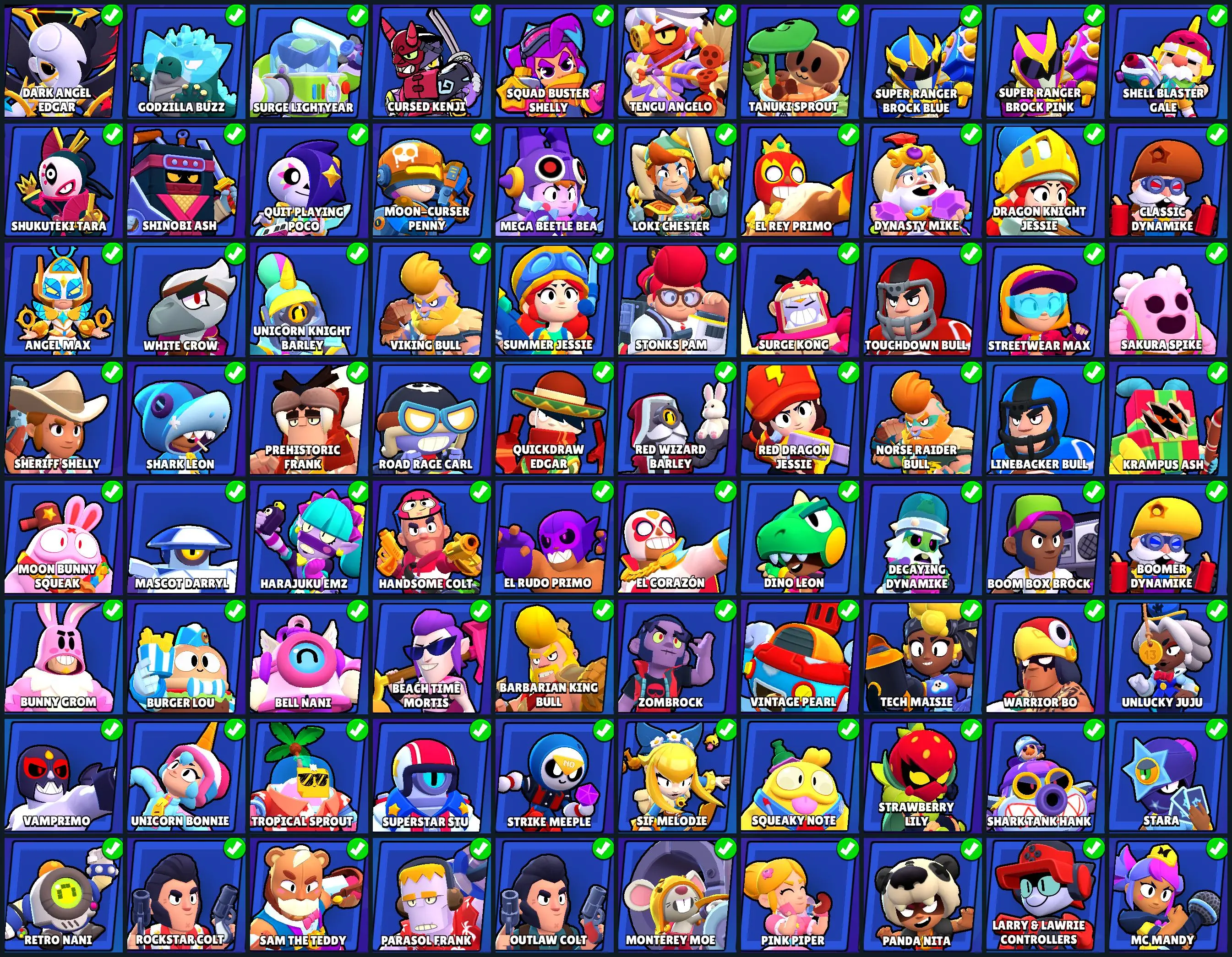 111 SKINS | 25400 TROPHIES | DARK ANGEL EDGAR | GODZILLA BUZZ | SURGE LIGHTYEAR | SUPER RANGER BROCK BLUE | ROAD RAGE CARL | WARRIOR BO | SHELL BLASTER GALE | BEACH BELLE | SHINOBI ASH | TECH MAISIE | SHUKUTEKI TARA | ANGEL MAX | VAMPRIMO | 72 BRAWLERS