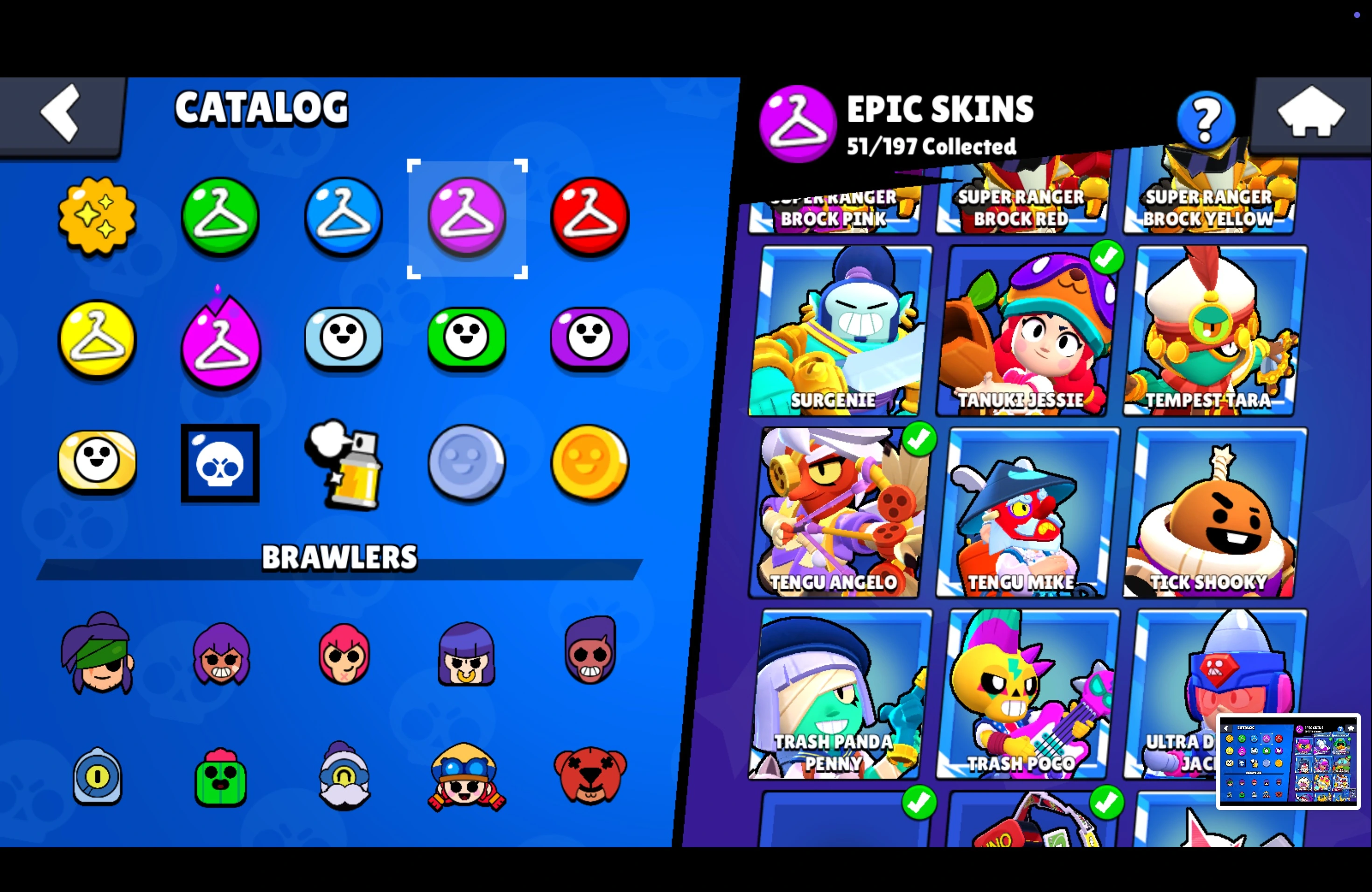 11.11 PIN â 191 SKINS â 53.800 TROPHY â 87 BRAWLERS â 24 MAX â 20 HYPERCHARGED â CURSED KENJI â MARIPOSA PIPER â DIRECTOR BUZZ â KRAKEN SURGE â KABOCHA FANG â SPIKE â LEGENDARY â LEON