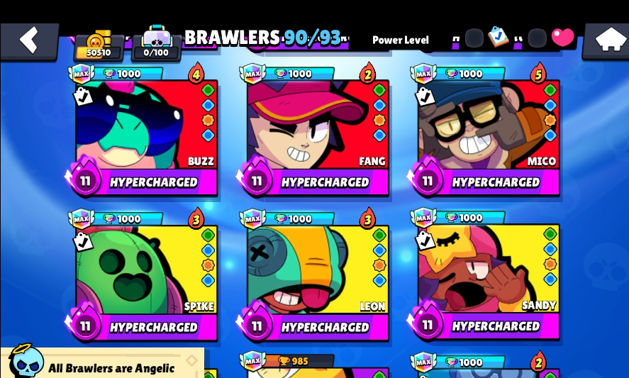 11.11 PIN â 199 SKINS â 50.500 TROPHY â 90 BRAWLERS â 33 MAX â 25 HYPERCHARGED â FINAL BOSS RICO â NINJA ASH â NINJA ASH â DIY SURGE â OCTO FANG â SPIKE â LEGENDARY â LEON