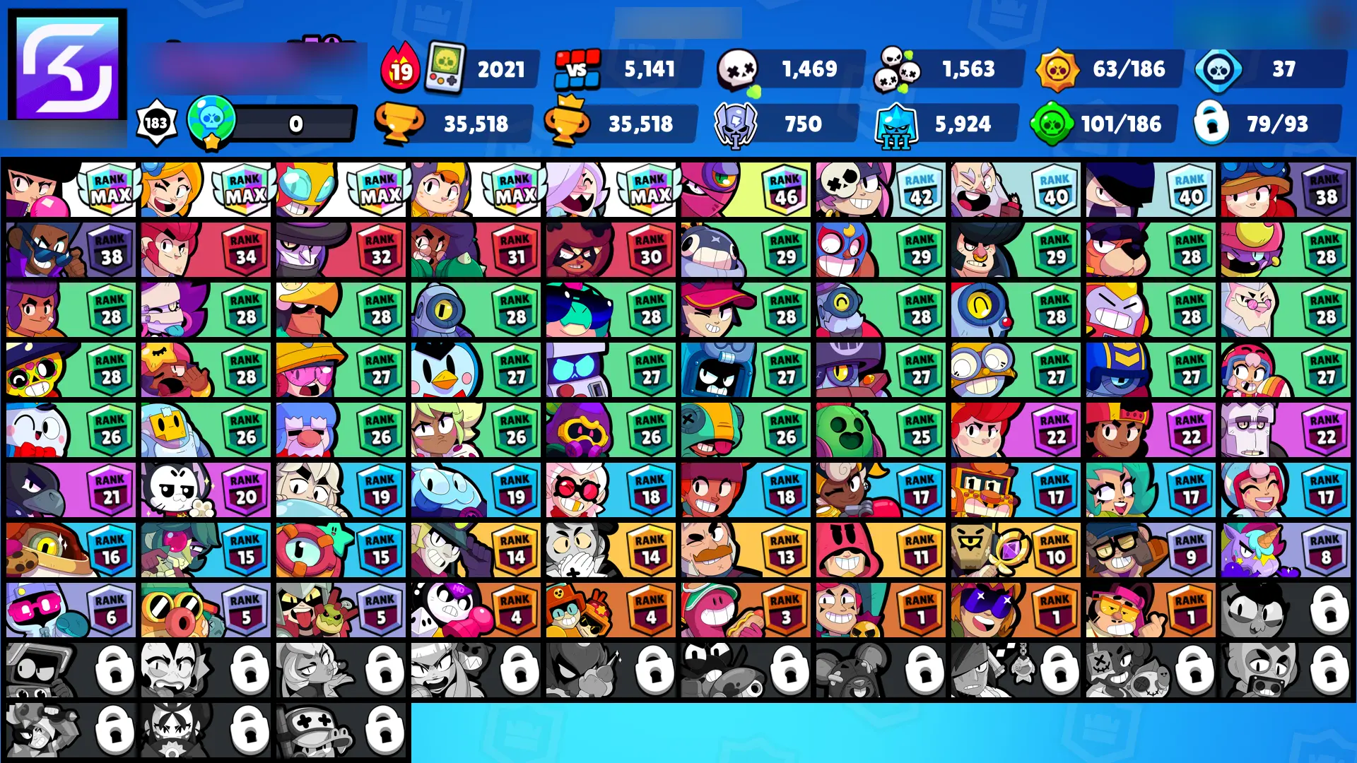 142 SKINS | 35474 TROPHIES | HEROINE BIBI | WHITE WOLF LEON | FILMMAKER BUZZ | SURGE LIGHTYEAR | SHIBA NITA | RUI SHOU NITA | RUNNER NITA | HO HO HO BO | SULTAN CARL | FLAG BEARER PIPER | WARRIOR BO | UNDERWORLD BO | LUNAR PIPER | 79 BRAWLERS