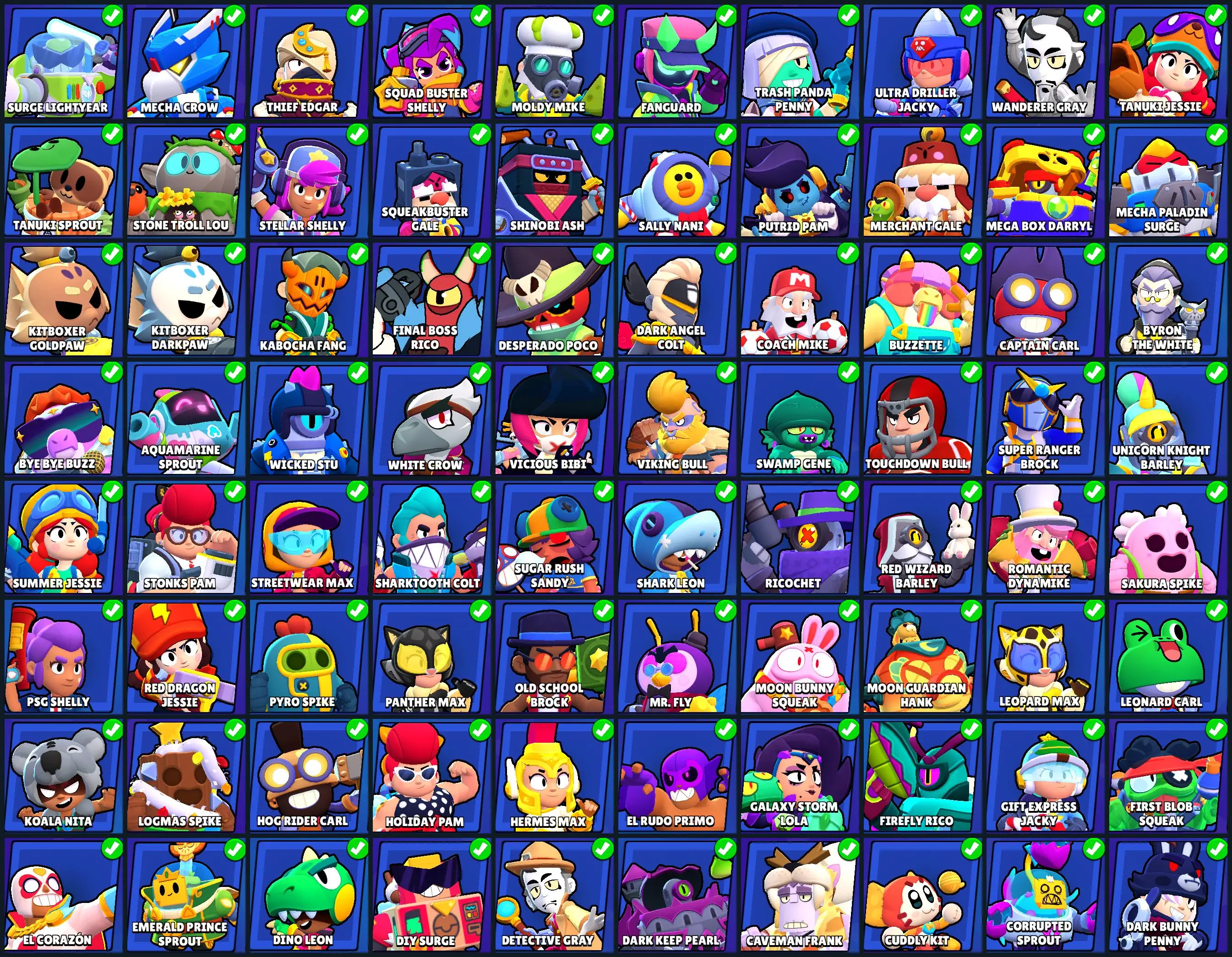 150 SKINS | 38142 TROPHIES | MERCHANT GALE | MECHA PALADIN SURGE | THIEF EDGAR | HERMES MAX | SURGE LIGHTYEAR | MECHA CROW | TRASH PANDA PENNY | CAPTAIN CARL | WARRIOR BO | MOLDY MIKE | SQUEAKBUSTER GALE | GALACTIC GALE | SHINOBI ASH | 82 BRAWLERS