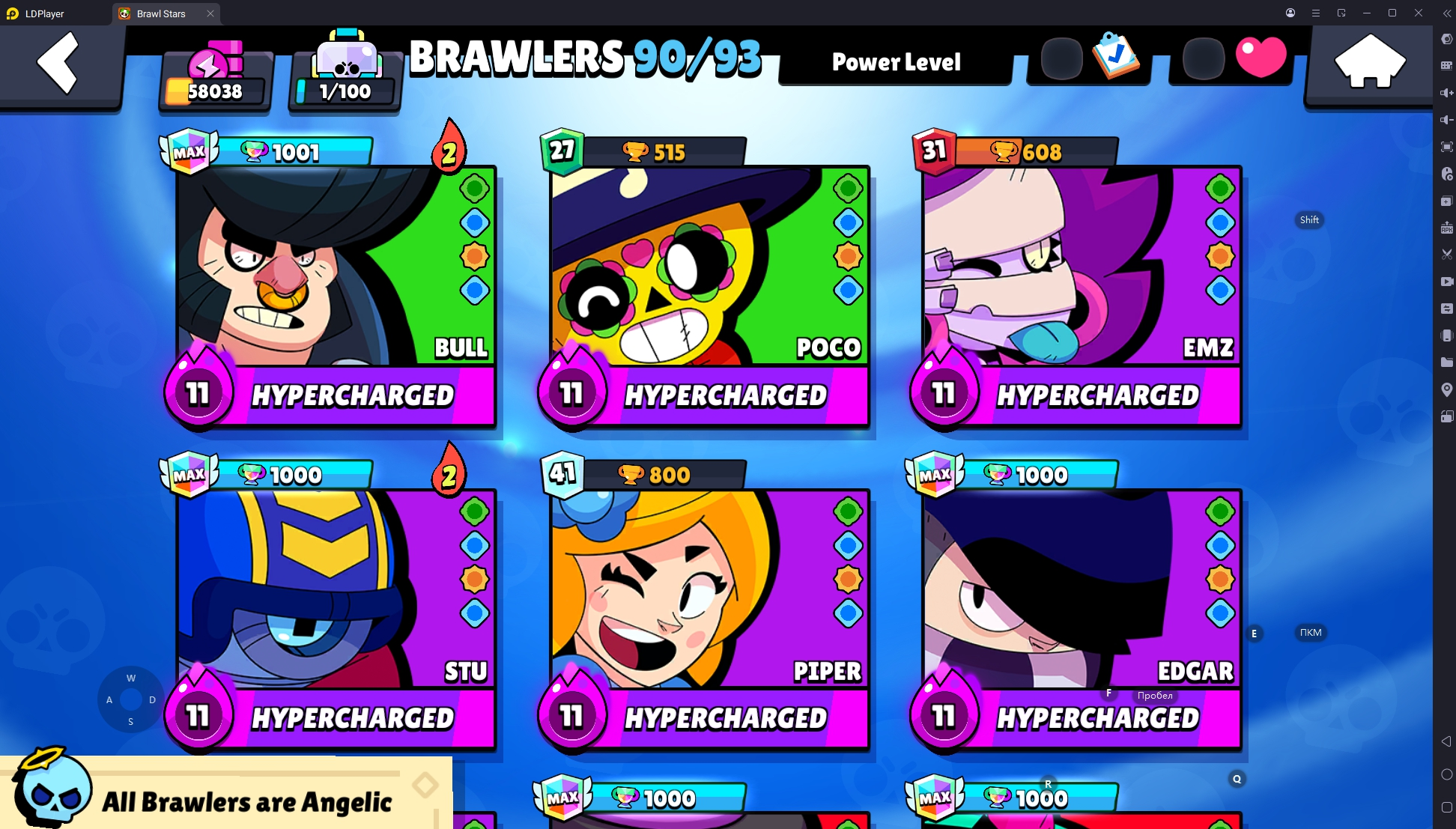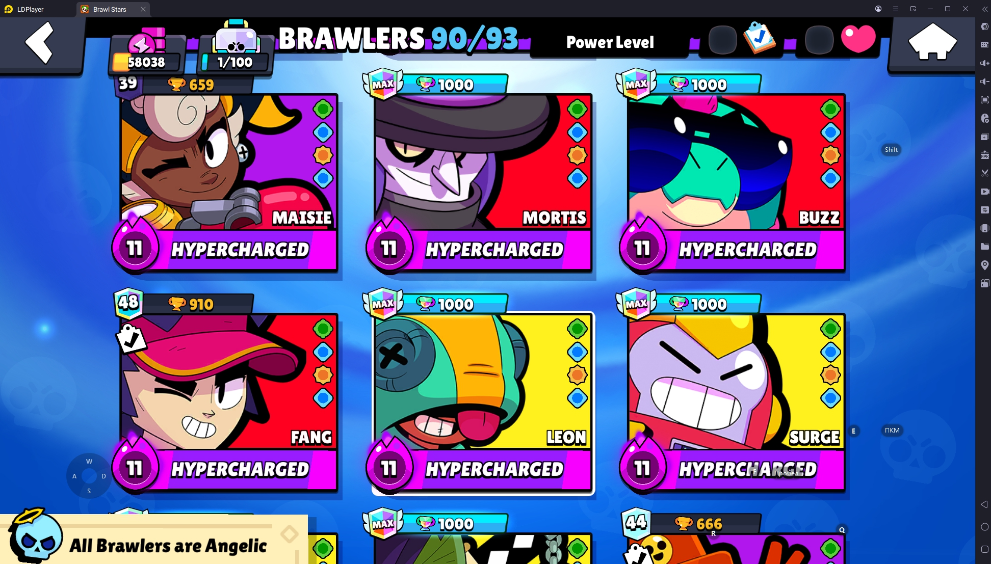 172 SKINS 💯 58.038 TROPHIES 🏆 90 BRAWLERS 🐼 14 HYPERCHARGED 🩸 17 MAX BRAWLERS 💛 ROBO MIKE 🧡 WHITE WOLF LEON 🧡 SKELETAL SURGE 🧡 DARK SAMURAI GENE 🧡 KABOCHA FANG 💯