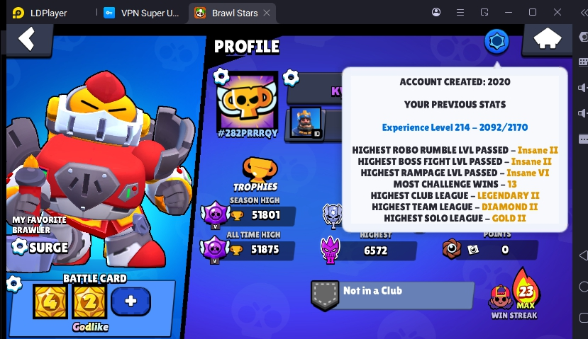181 SKINS 💯 PIN 11.11 🧡 51.794 TROPHIES 🏆 90 BRAWLERS 🐼 13 HYPERCHARGED 🩸 23 MAX BRAWLERS 💛 LAMBENT MORTIS !MKG0650