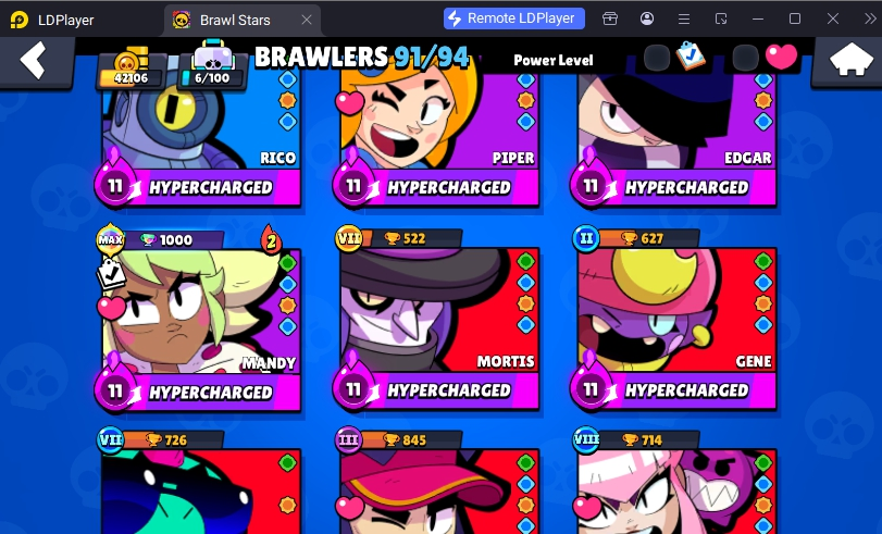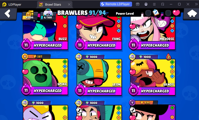 204 SKINS 💯 FILMMAKER BUZZ 🧡 42.106 TROPHIES 🏆 91 BRAWLERS 🐼 14 HYPERCHARGED 🩸 19 MAX BRAWLERS 💛 DESERT CSORPION CHUCK 🧡 HELLBULL 🧡 WHITE WOLF LEON 🧡 RAGEQUIT TARA 🧡 UNO CHESTER   💯