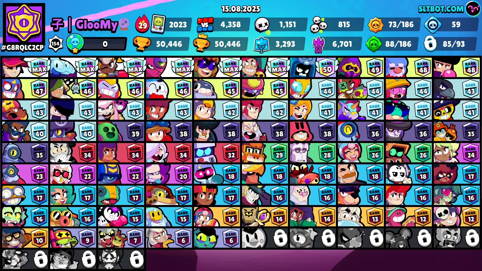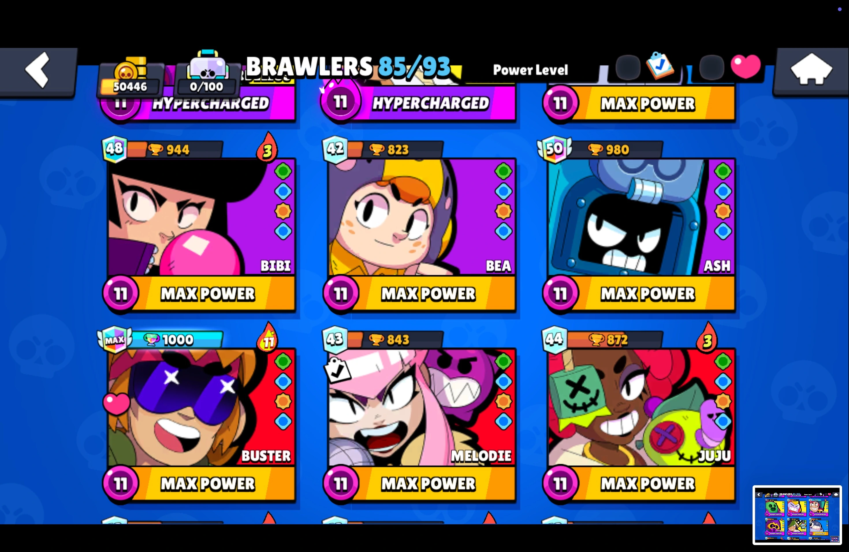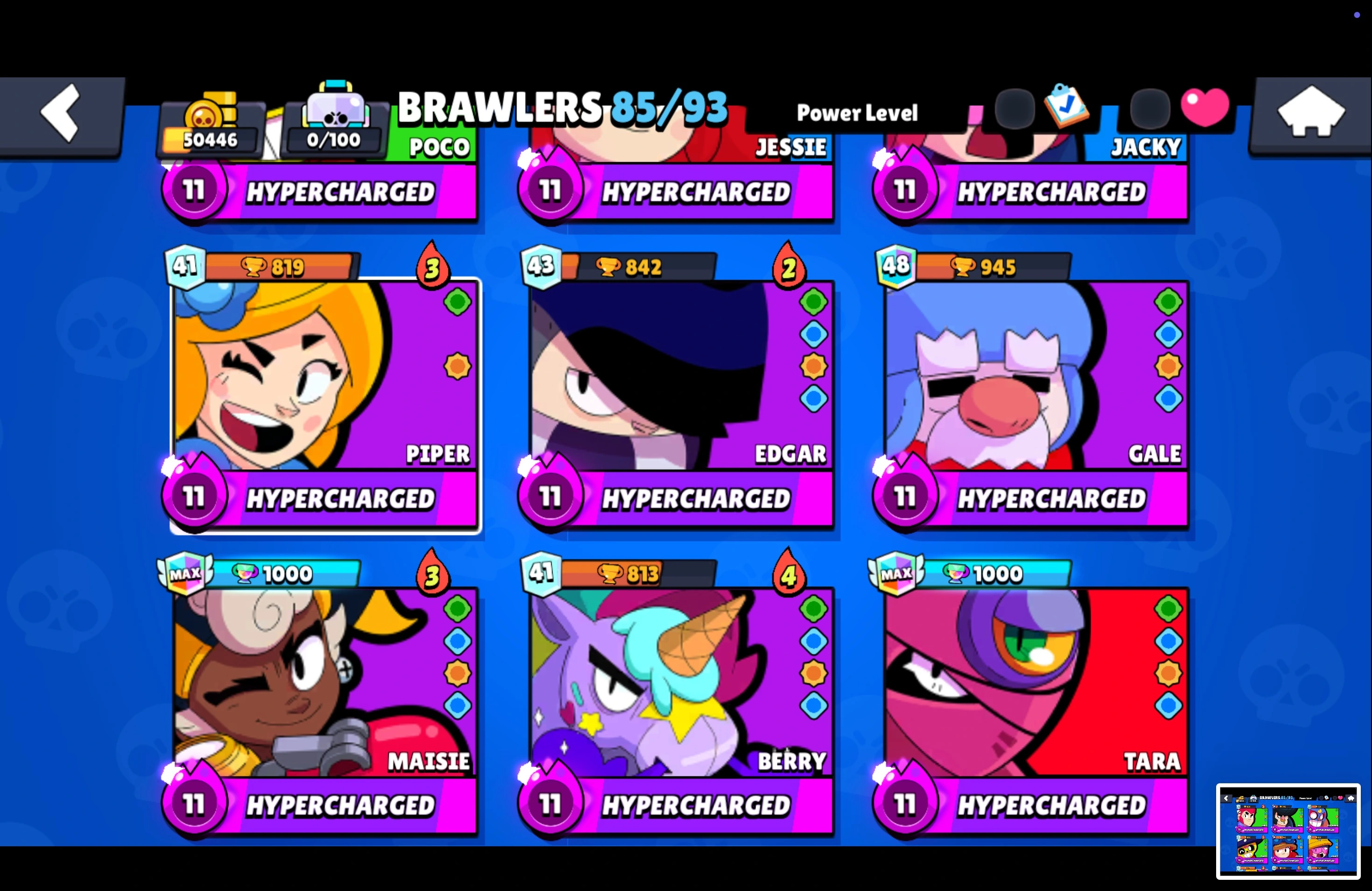 205 SKINS â 50.500 TROPHY â 85 BRAWLERS â 32 MAX â 23 HYPERCHARGED â DEMON WILLOW â MARIPOSA PIPER â AMBER DE LA VEGA â SURGENIE SURGE â FANGUARD FANG â SPIKE â LEGENDARY â LEON