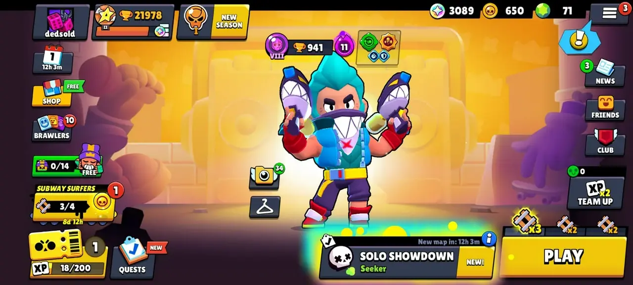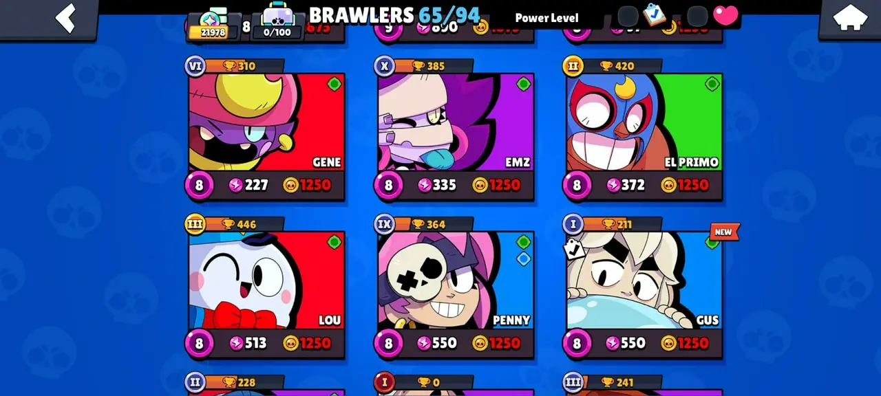 ⧭ 20K TROPHIES ◟ 65 BRAWLER ◼ 3 MAX ⧓ 13 HYPERCHANGE (MAX+ READY TO UNLOCK) ◦ 70 GEMS ⬤ 95 SKINS | NBS35