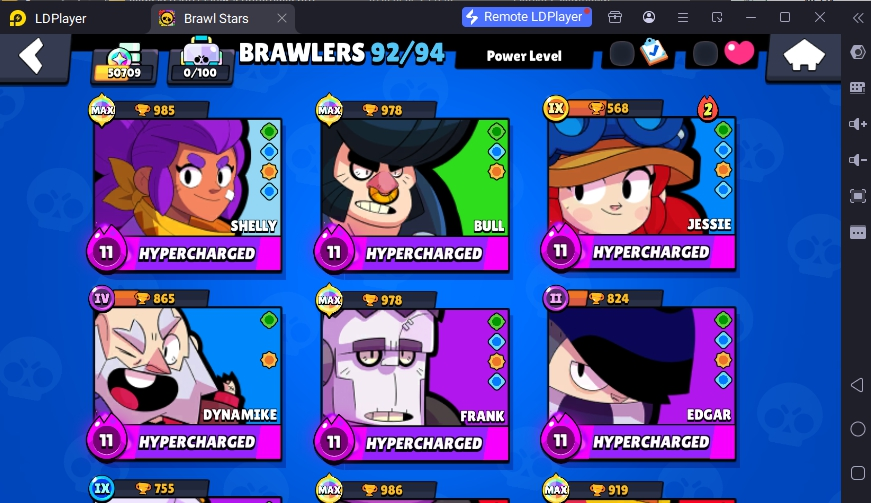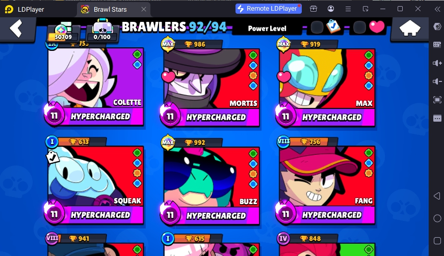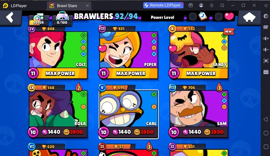 212 SKINS 💯 CAPTAIN CARL 🧡 50.709 TROPHIES 🏆 92 BRAWLERS 🐼 15 HYPERCHARGED 🩸 18 MAX BRAWLERS 💛 RED GODZILLA BUZZ 🧡 TUSKED NITA 🧡 POPCORN RICO 🧡 UNO CHESTER 🧡 WANDERER GRAY 💯