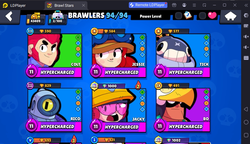 272 SKINS 💯 BELLE GOLDHAND ❤️ 43.409 CUPS 🏆 94 BRAWLERS 🐼 13 HYPERCHARGED 🩸 37 MAX BRAWLERS 💛 CURSED KENJI ❤️ BORN BAD BUZZ ❤️ FURIOUS FANG ❤️ MAJOR ROSA ❤️ TRICKY JANET 💯