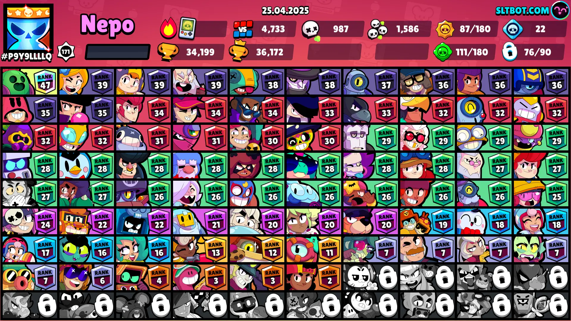 63 SKINS 🩵 34.199 TROPHIES 🏆 76 BRAWLERS 🧸 2 HYPERCHARGED 🩸 7 MAX BRAWLERS 🩷 CUPID PIPER🩵 ONIGHT WITCH MORTIS 🩵 RED DRAGON JESSIE 🩵 COACH MIKE 🩵 RICOCHET 🩵 RAGEQUIT TARA 🎀