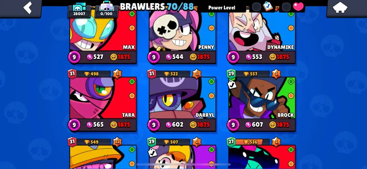 70 Brawler🦕28007 Trophy🦕9 Hypercharged🦕3 Maxpower🦕82 Amazing Skin🦕Instant Delivery