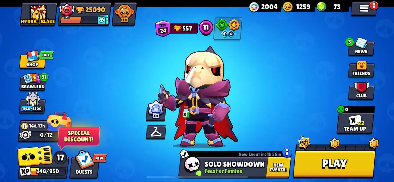 71 Brawler☀️25090 Trophy☀️2 MaxPower☀️1 Hypercharged☀️ Amazing Rare Skin☀️2004 Bling☀️1259 Gold☀️73 Gems☀️Safe Acc☀️Instant Delivery