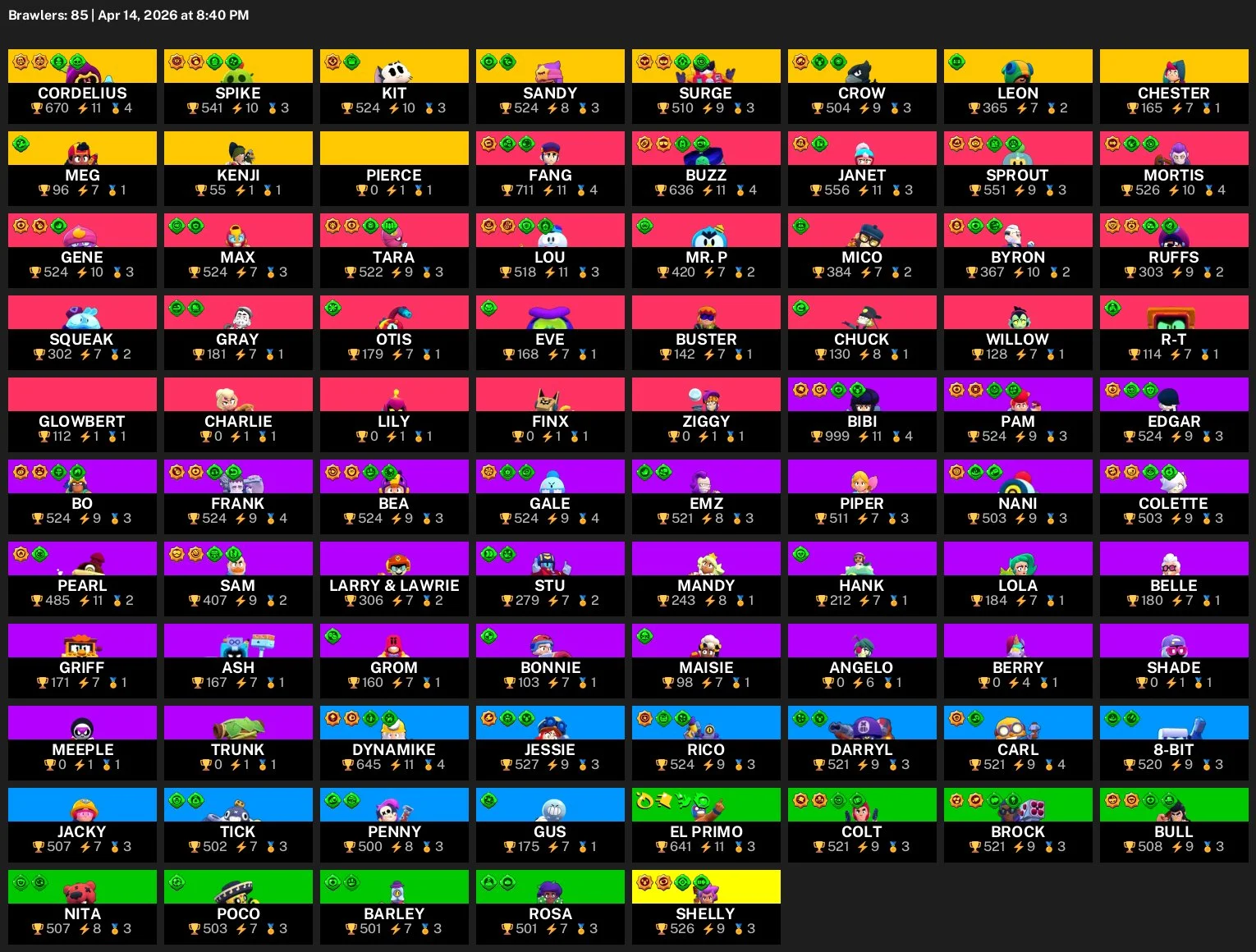 🎟️85 Brawlers🎟️30,799 Cups🔥178 Level💥11 Easy