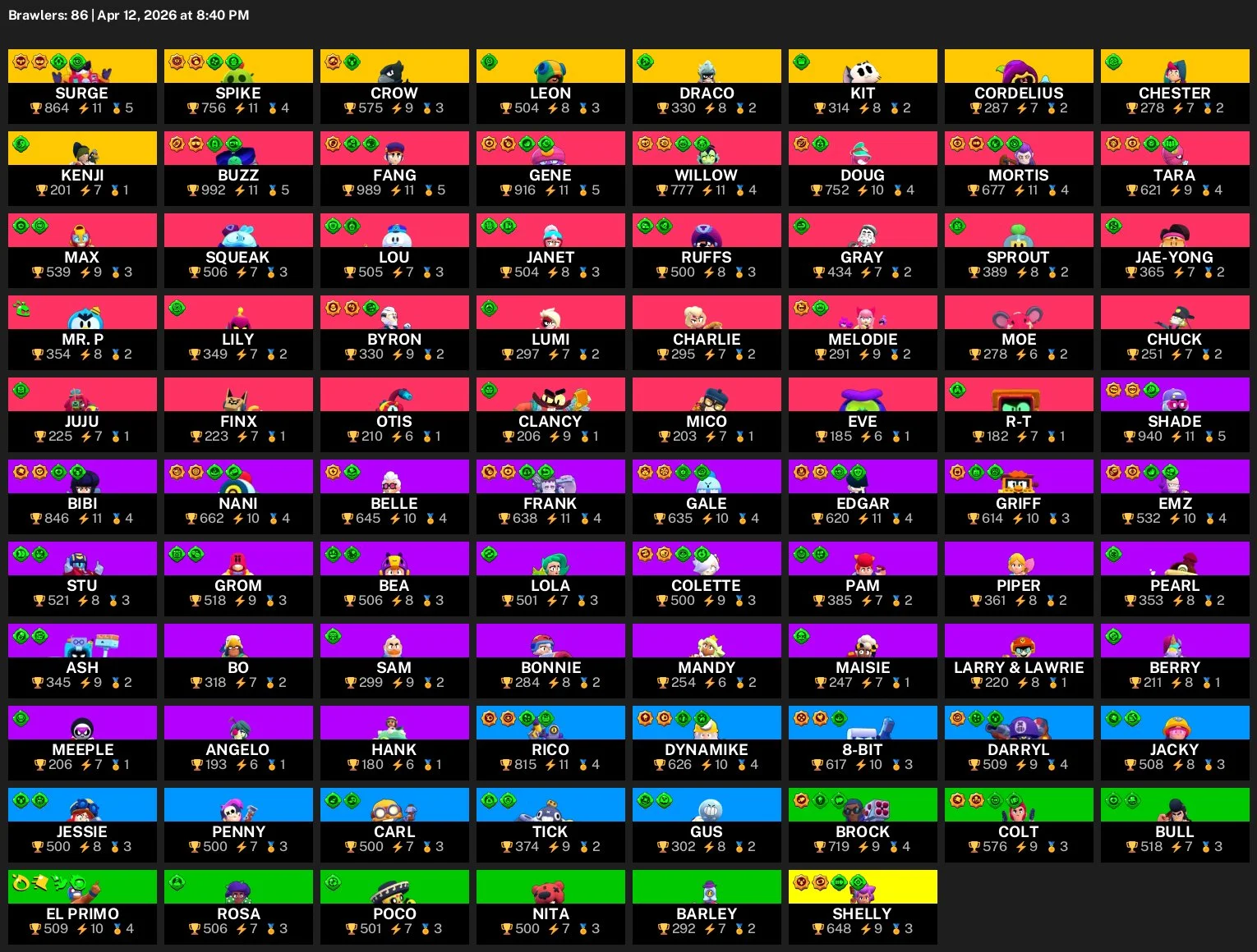 🎟️86 Brawler🎟️40,008 Cups🔥172 Level💥9 Leg🔥