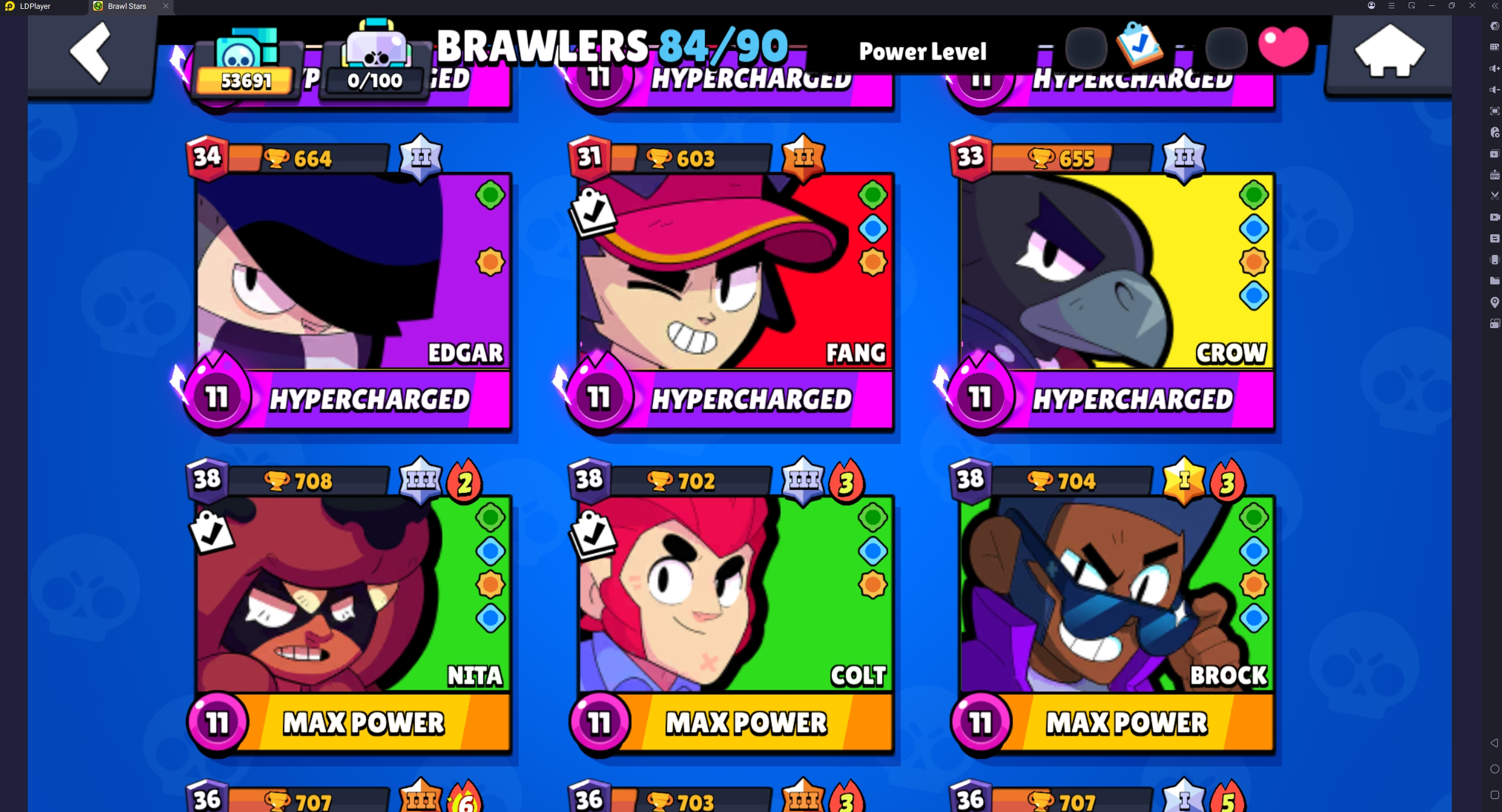 94 SKINS 🩵  53.691 TROPHIES 🏆 84 BRAWLERS 🧸  9 HYPERCHARGED 🩸 38 MAX BRAWLERS 🩷 DOCTOR EDGAR🩵 CRIMSON R-T 🩵 INSPECTOR COLETTE🩵 KRAKEN SURGE 🩵 POPCORN RICO🩵 ROSIE CHARLIE  🎀