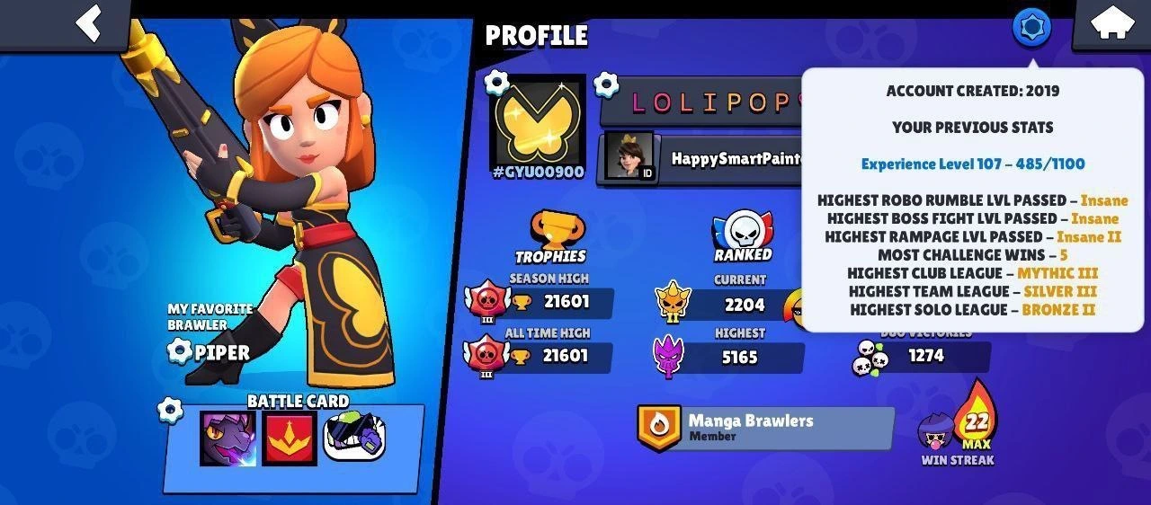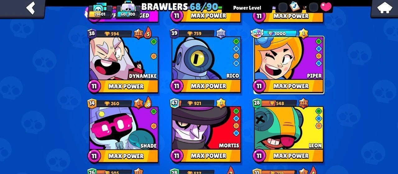 HOOT HOOT SHELLY 🪐68 BRAWLER 🫧TROPHIES 21601 😈 10 MAX BRAWLER 🛑[4 HYPERCHARGED]🌈 107 SKINS 💥 BOTH IOS & ANDROID CHEAP ♥ INSTANT DELIVERY 🚚