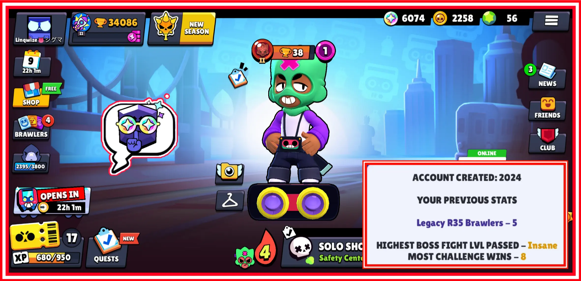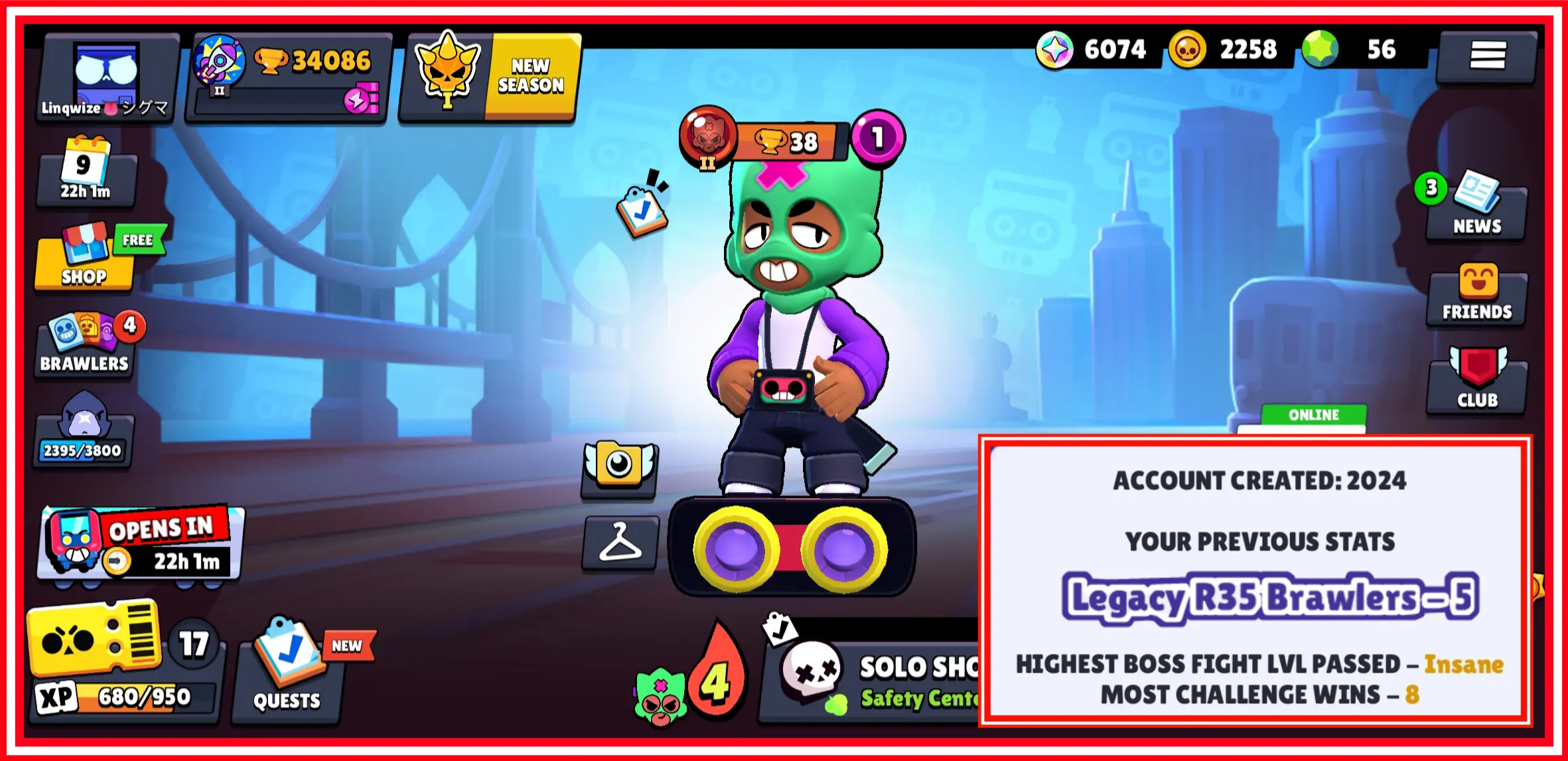 🔥 LEGACY RANK 35 [ 5 ] 🔥 [ R ⸱ 35 ] PIN 🔥 30K TROPHY 🔥 110 SKINS 🔥 58 BRAWLS 🔥 6 MAC BRAWLS 🔥 CHEAPEST IN MARKET 🔥