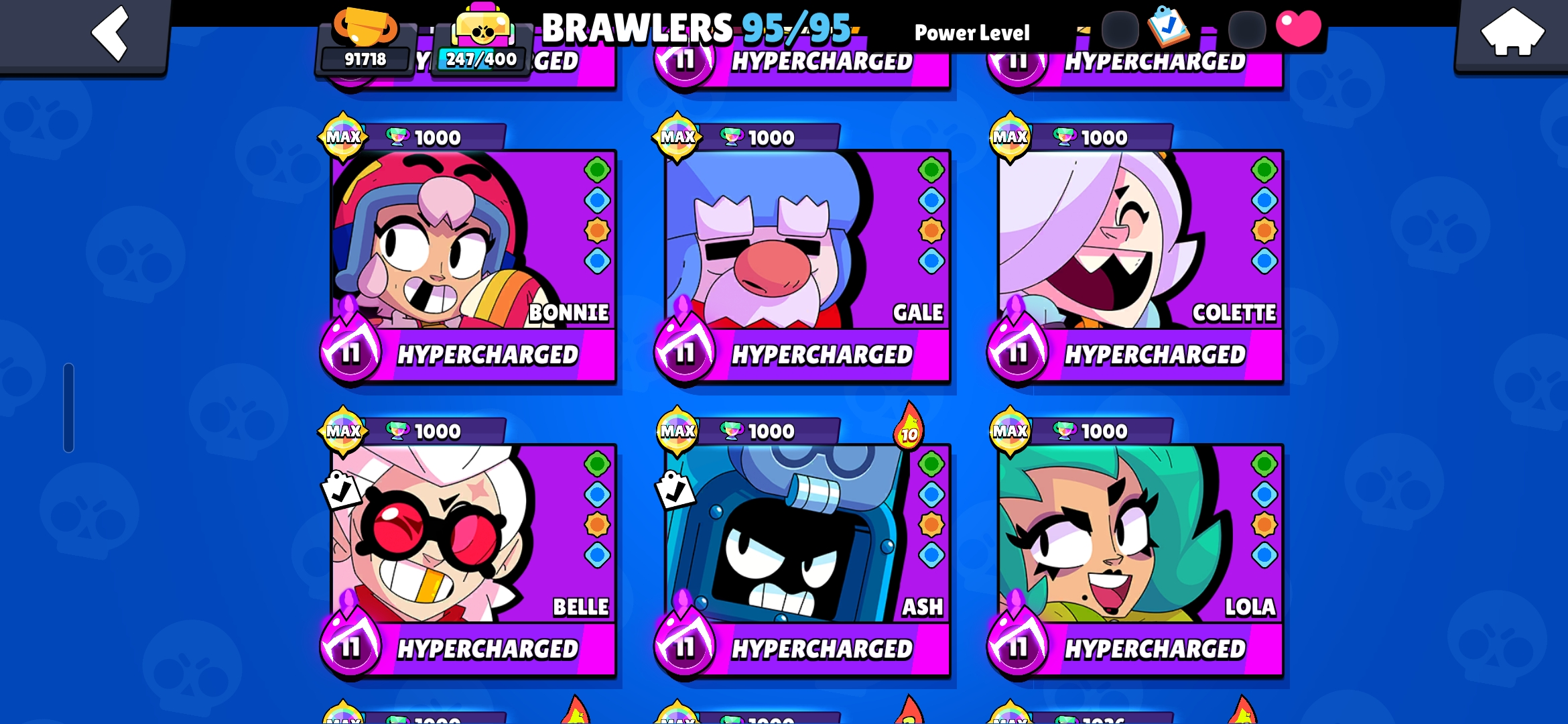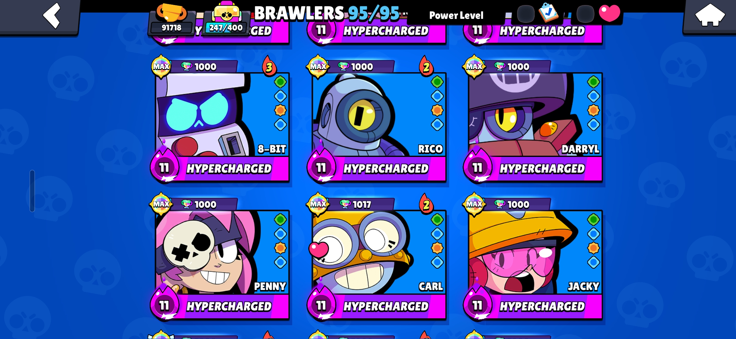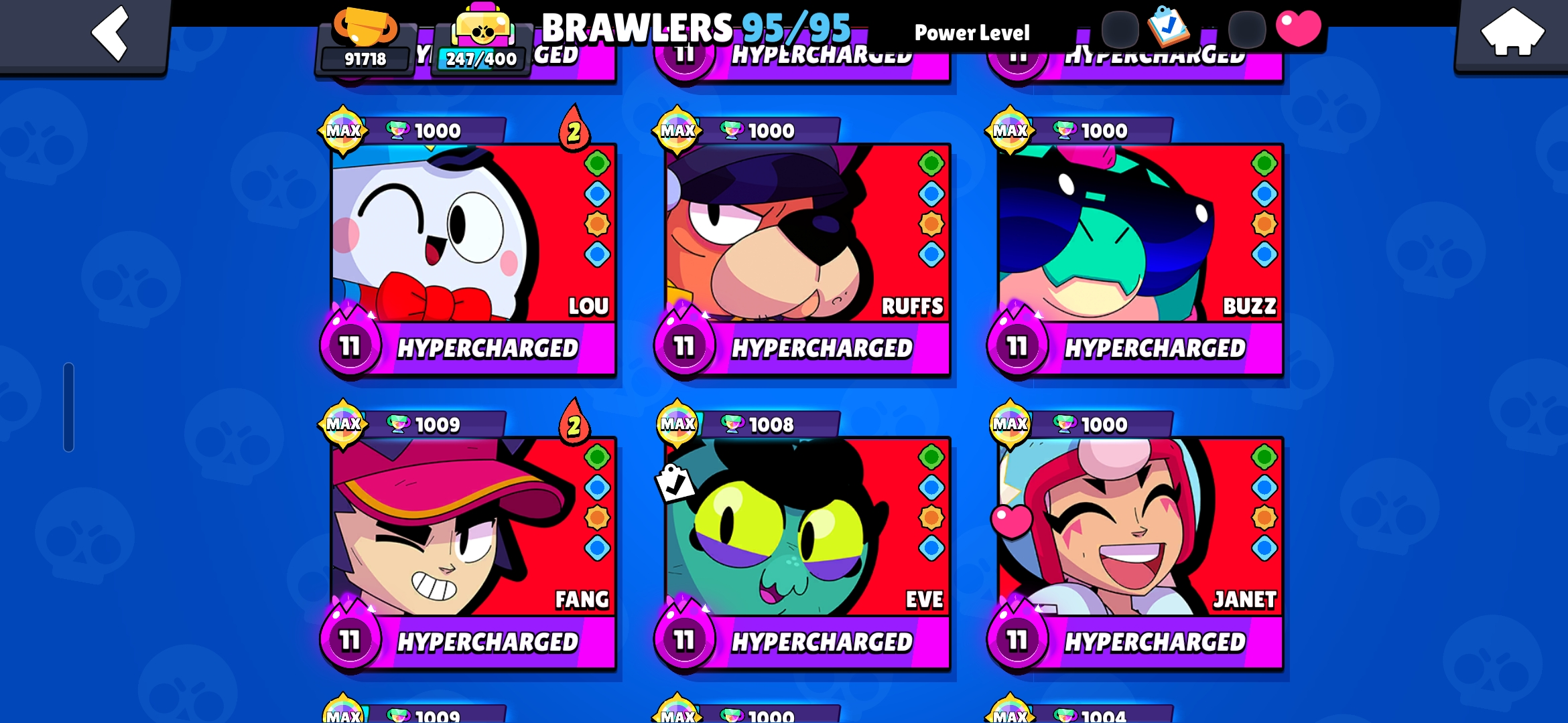 👑 (PREMIUM) 460 OG SKINS 💎 100K TROPHIES ALL TIME HIGH 🏆  ALL 90 HYPERCHARGED 😈 RARE LEGACY R35 & MATCHERINO PIN 🏅 METEORIC FAME ☄️ 43 TITLES 🔥 FULLY MAXED OUT ✨️ 2x MASTERS RANKED 🎯 PRESTIGE ✌️ STAR SHELLY 🌟 HEROINE BIBI 💪 INSTANT DELIVERY 🚚
