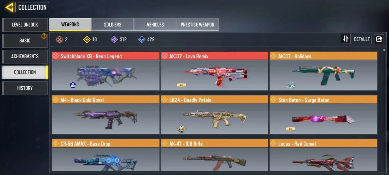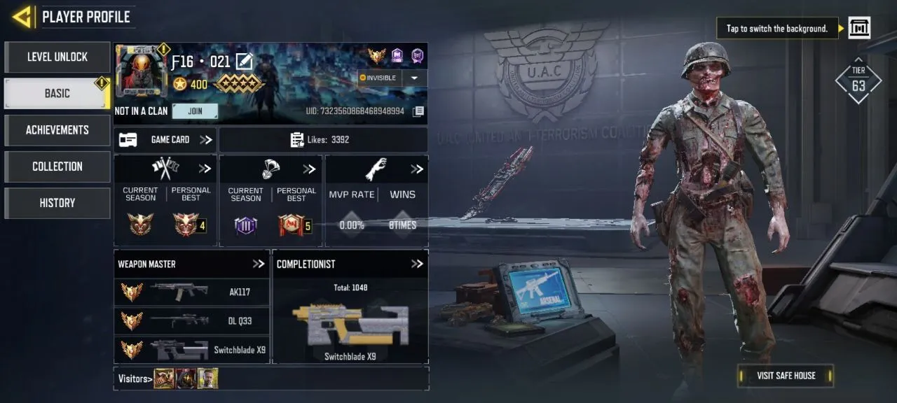 iOS Android 🎮 Level 400 🛍️ Rank Master ☠️ 2 Mytich 🧨 11 Legendary 🎯 480 Epic Skin 🧩 Code630