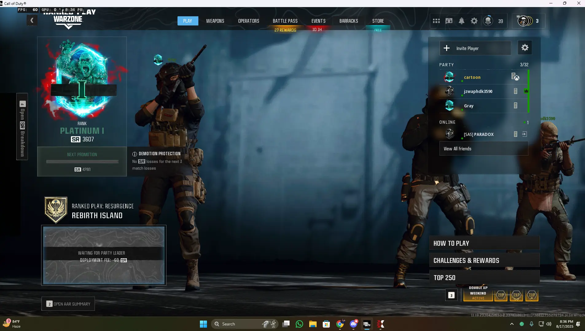 🔥 Rebirth Resurgence 🔥 🏆 Platinum 1 • SR 3617 ⚡ Level Random 👥 Operators