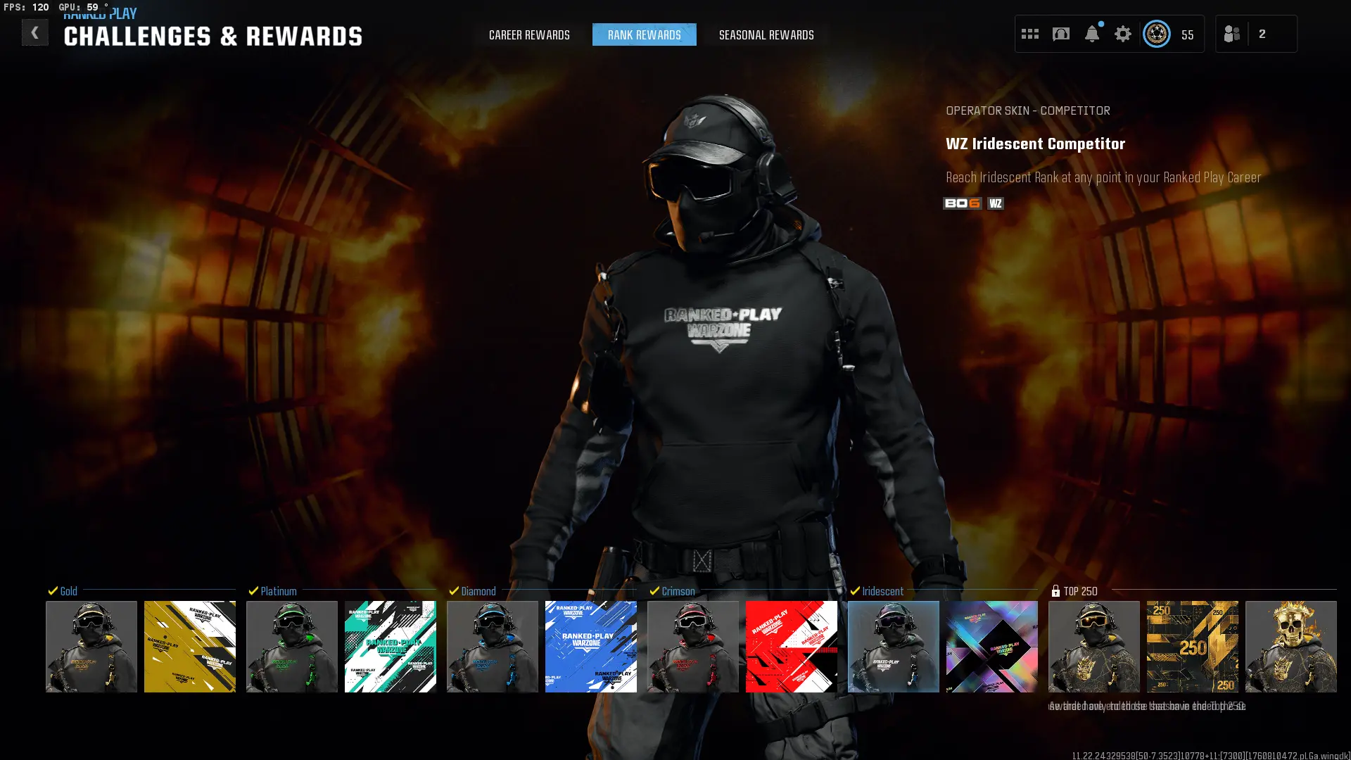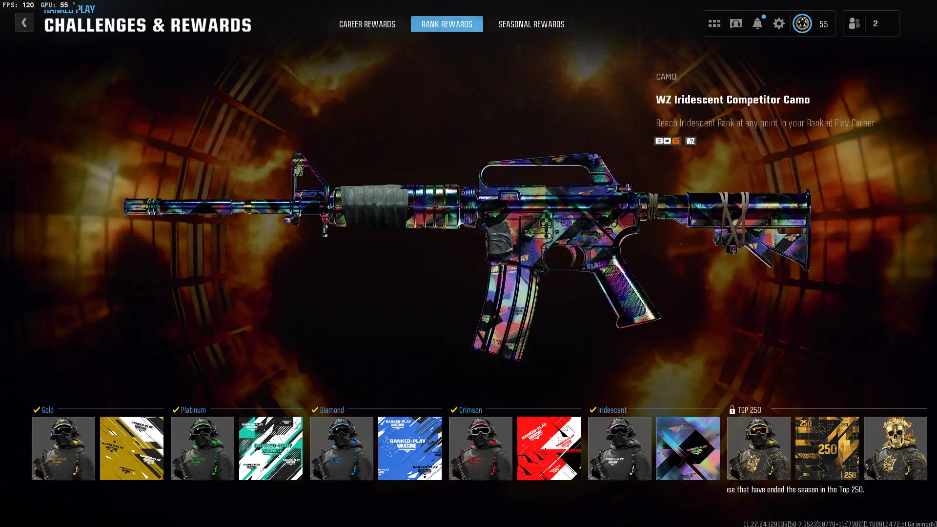 WZ4 Rebirth 🏆 Top 250 SZN 6🏆 level 55 💎 Iridescent SR 14007 🎯 All Iridescent Rewards Collected ⚔️ Ranked OPS 🔗 Linkable: Steam, Battle.net, PSN, Xbox 🚀 Warzone 4 Iridescent #Ndsfdsf