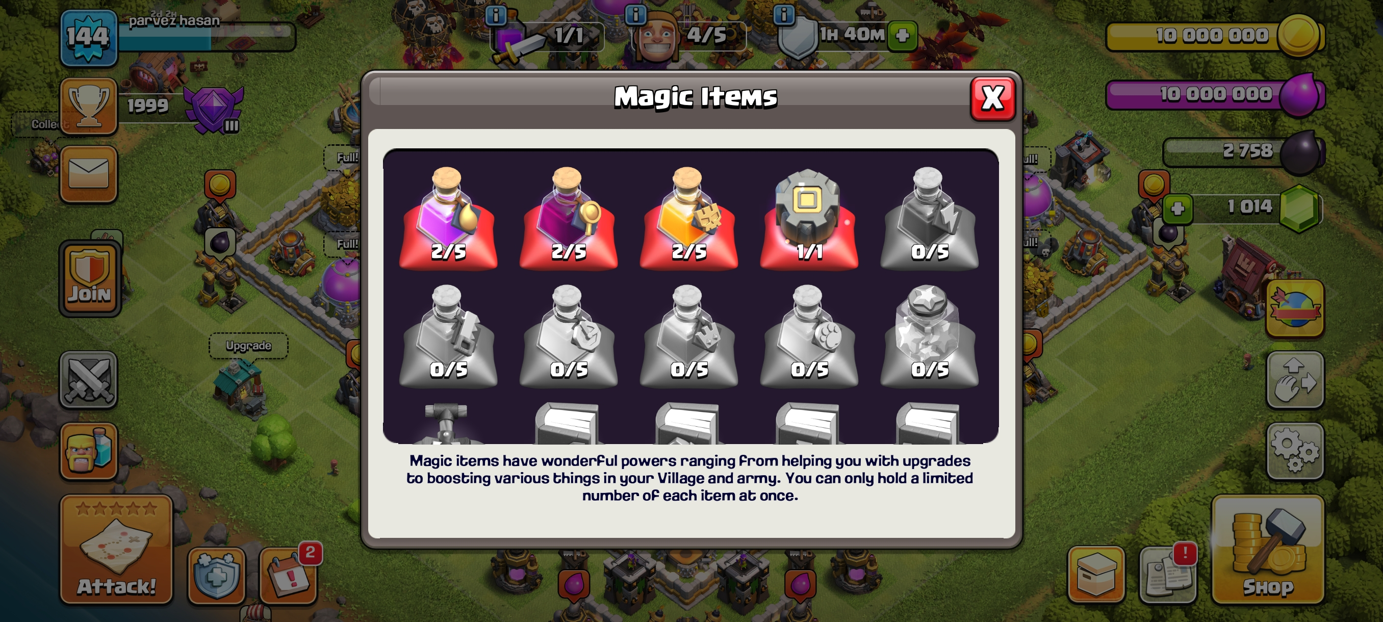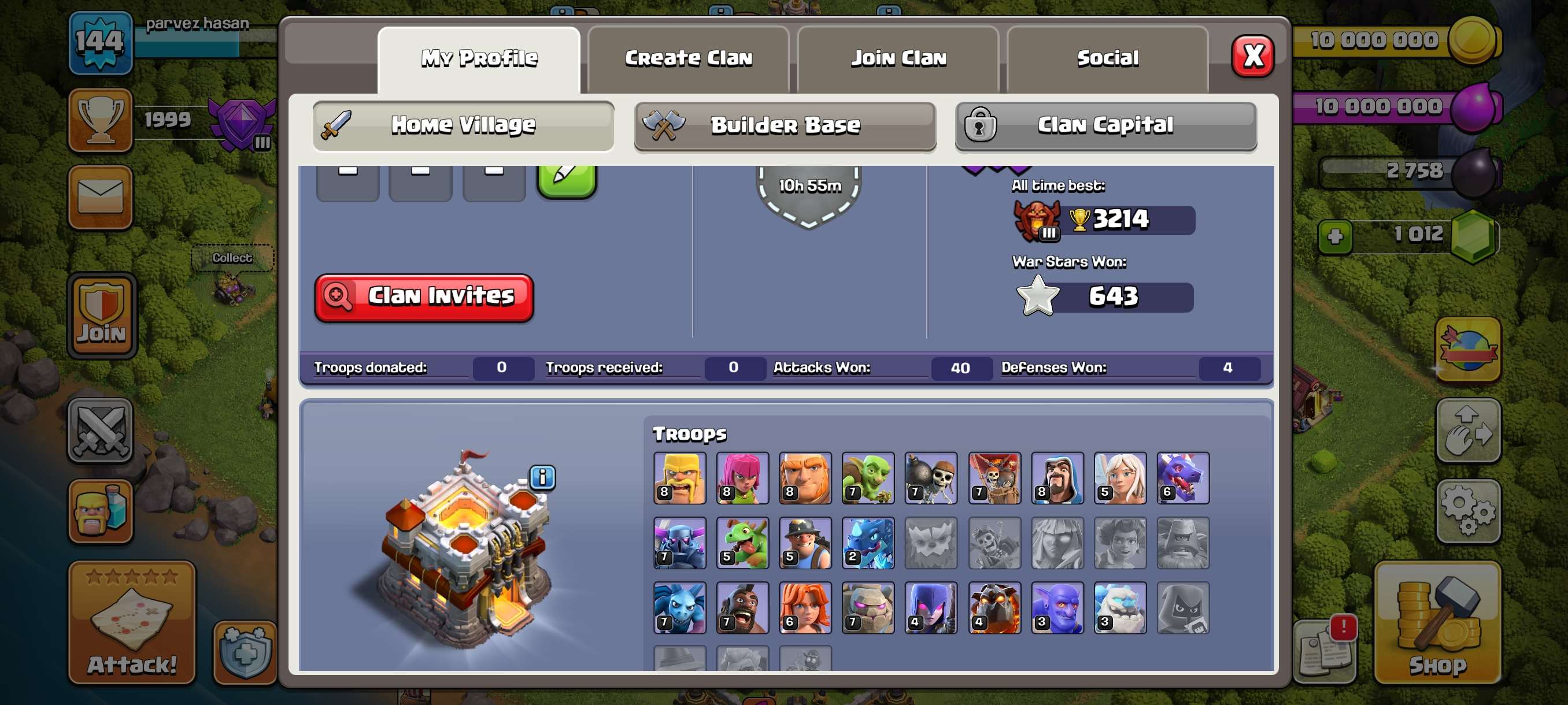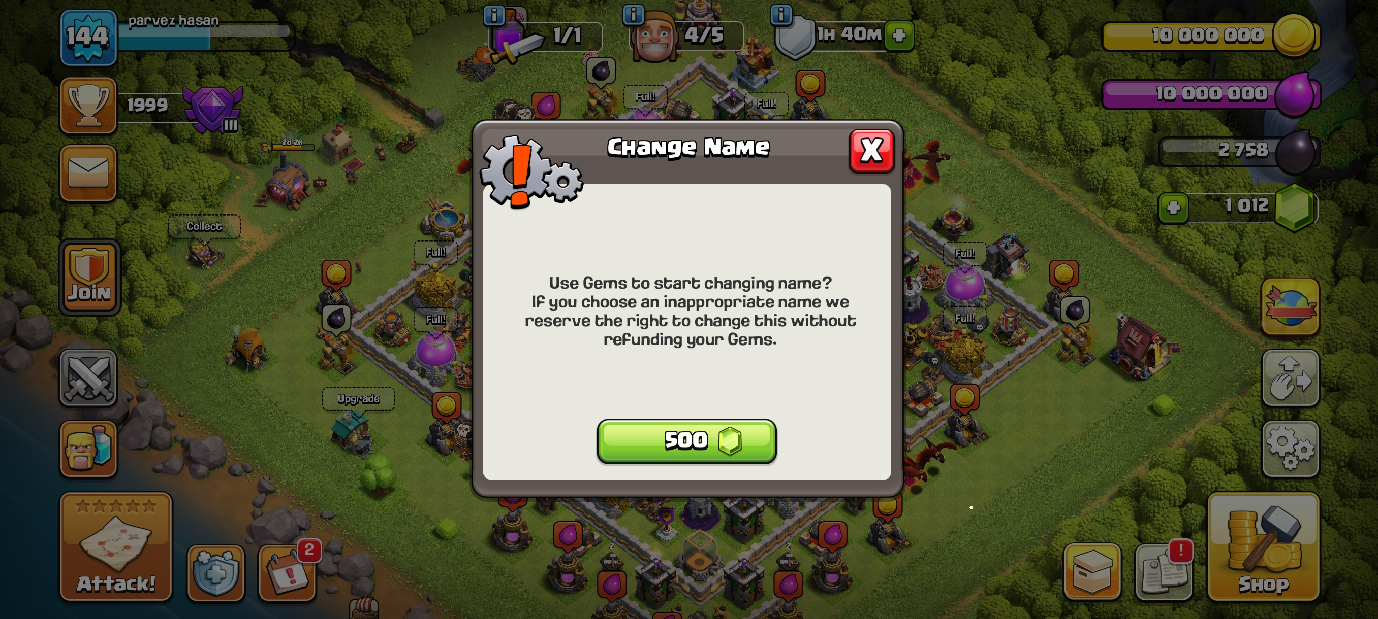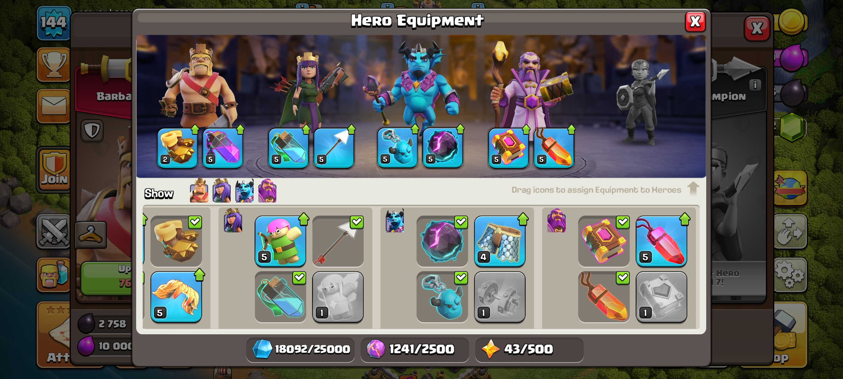 1000 Gems--High Xp144--Th11 Full Max-- Hero 46-44-26-20-- Equipment High--643 War Star-Nc 500--Full Access