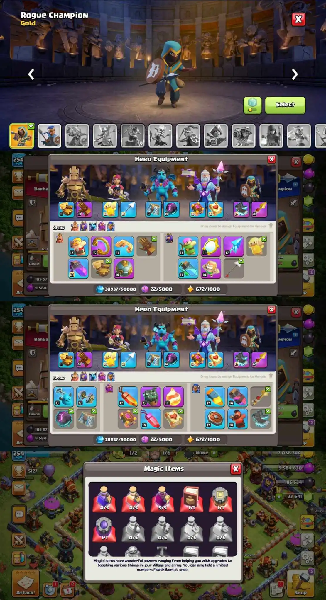 1706 | TH17 MAX ID | GEMS-3161 | HERO'S:74-100-70-45-31 | 9x EPIC EQUIPMENT | PURPLE WALL | XP 217 | 4 SKIN | MAGIC ITEM