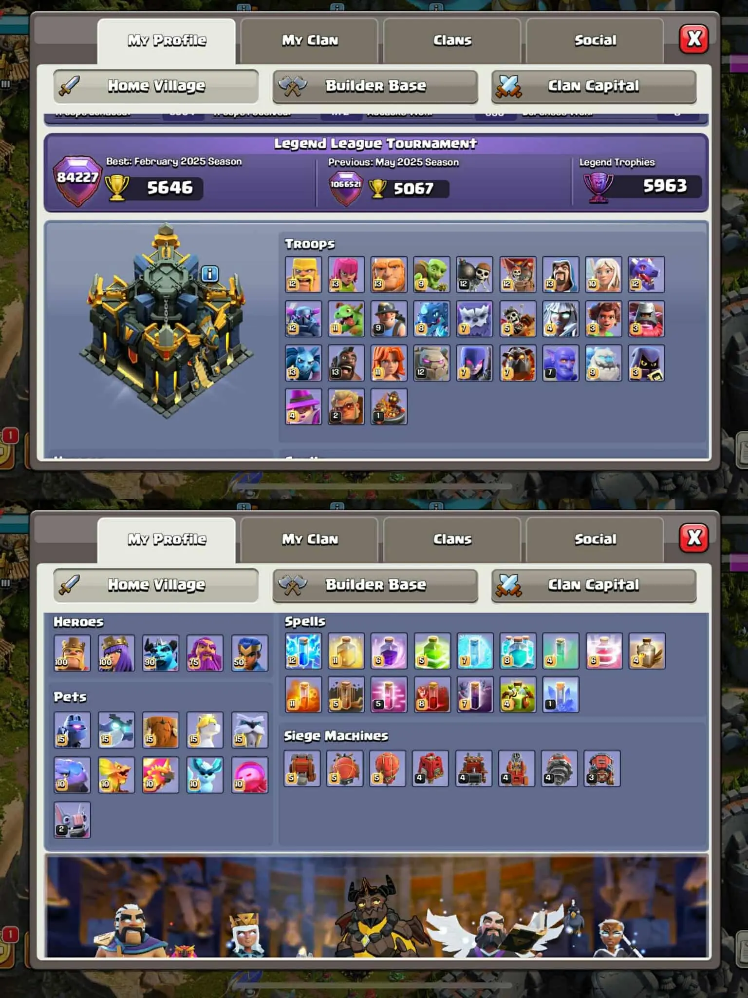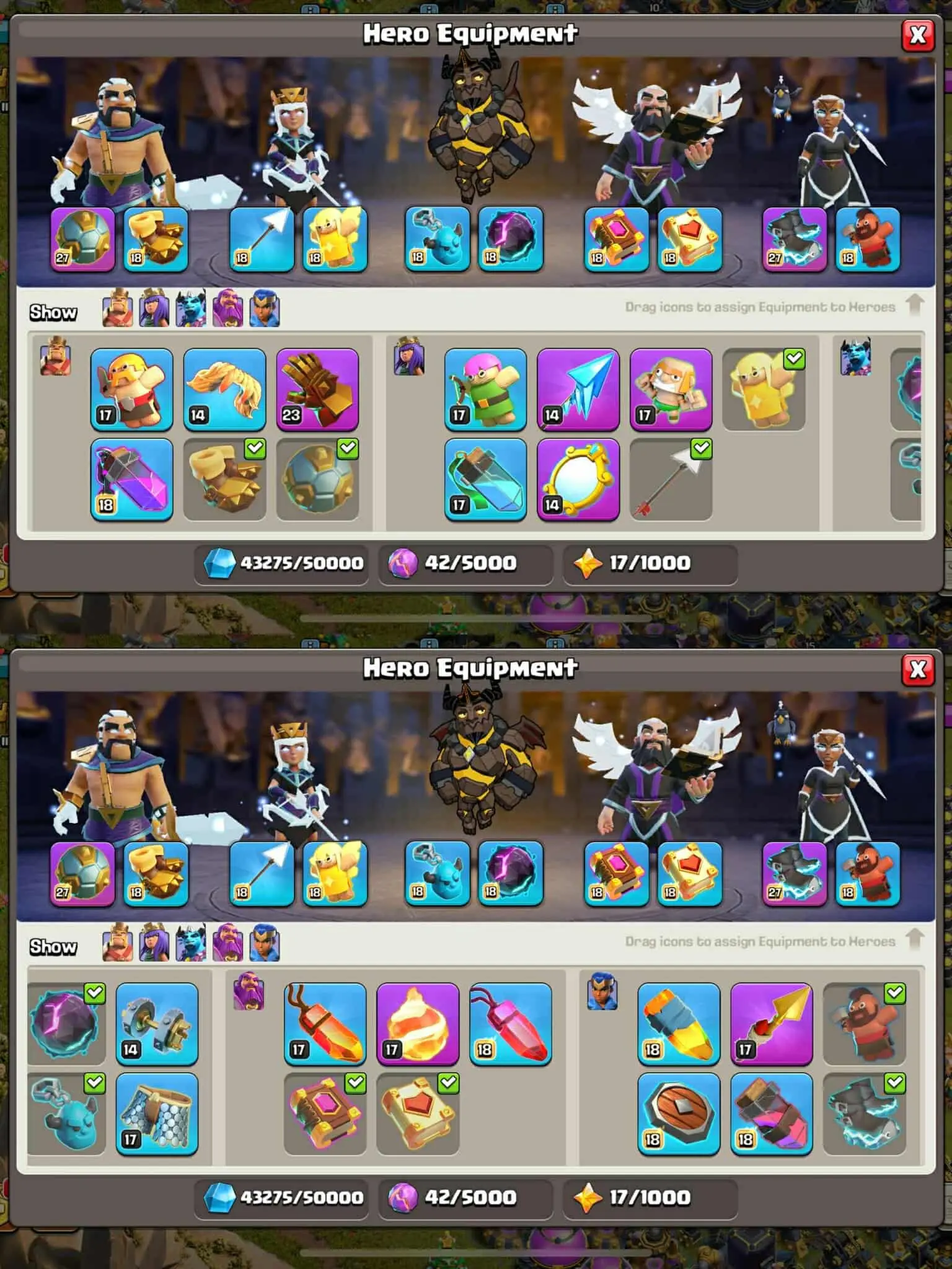 2 Epic Looking Scenery 🌹Th17 Maxed👑Heros:All Maxed💯 6 Epic(3 Maxed)14 Equipment Maxed🌹BH10 Maxed🌹NC Available 💯♦️Insta Deli
