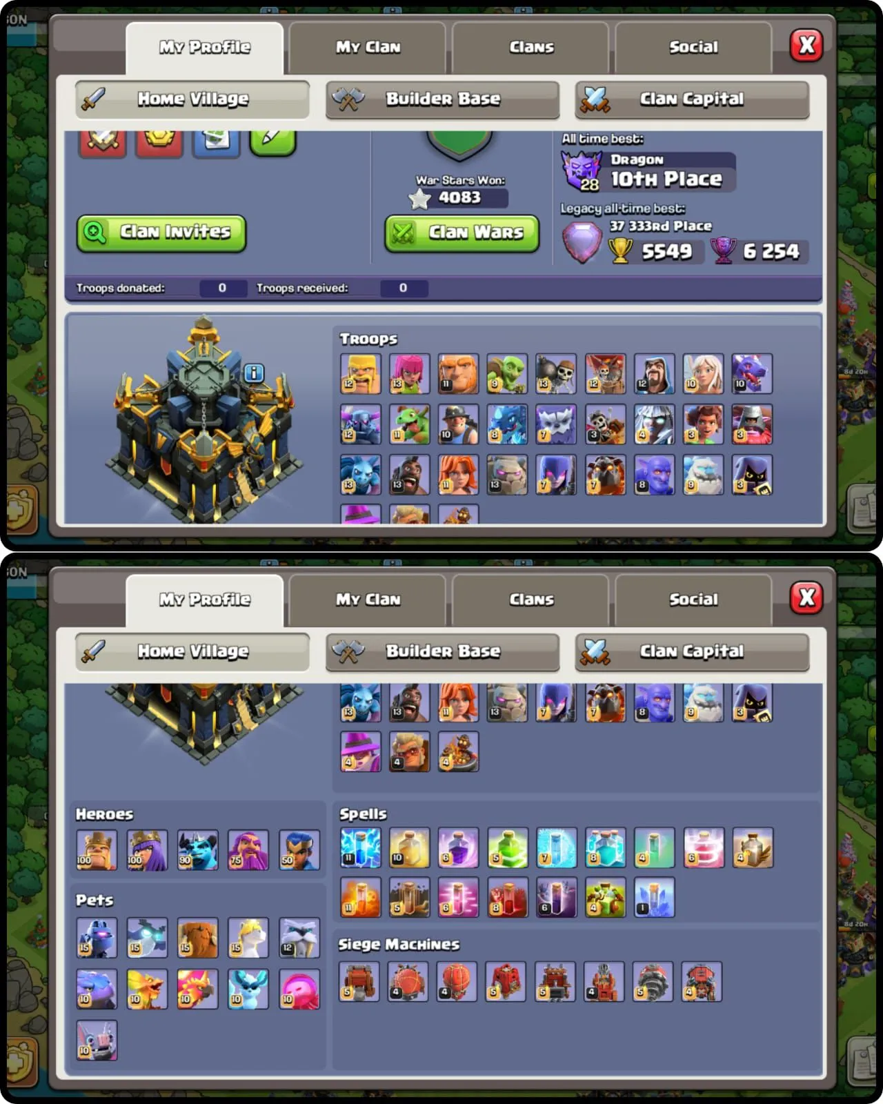 ♻️ 5 EQUIPMENTS MAX ♻️ TH 17 MAX ALMOST ♻️ 12 EPIC MAX ♻️ 4000 WAR STARS ♻️ 5 HEROES MAX ♻️ HERO SKINS ♻️ BH MAX ♻️ STACKED ♻️ INSTANT EMAIL ACCESS ♻️ S09