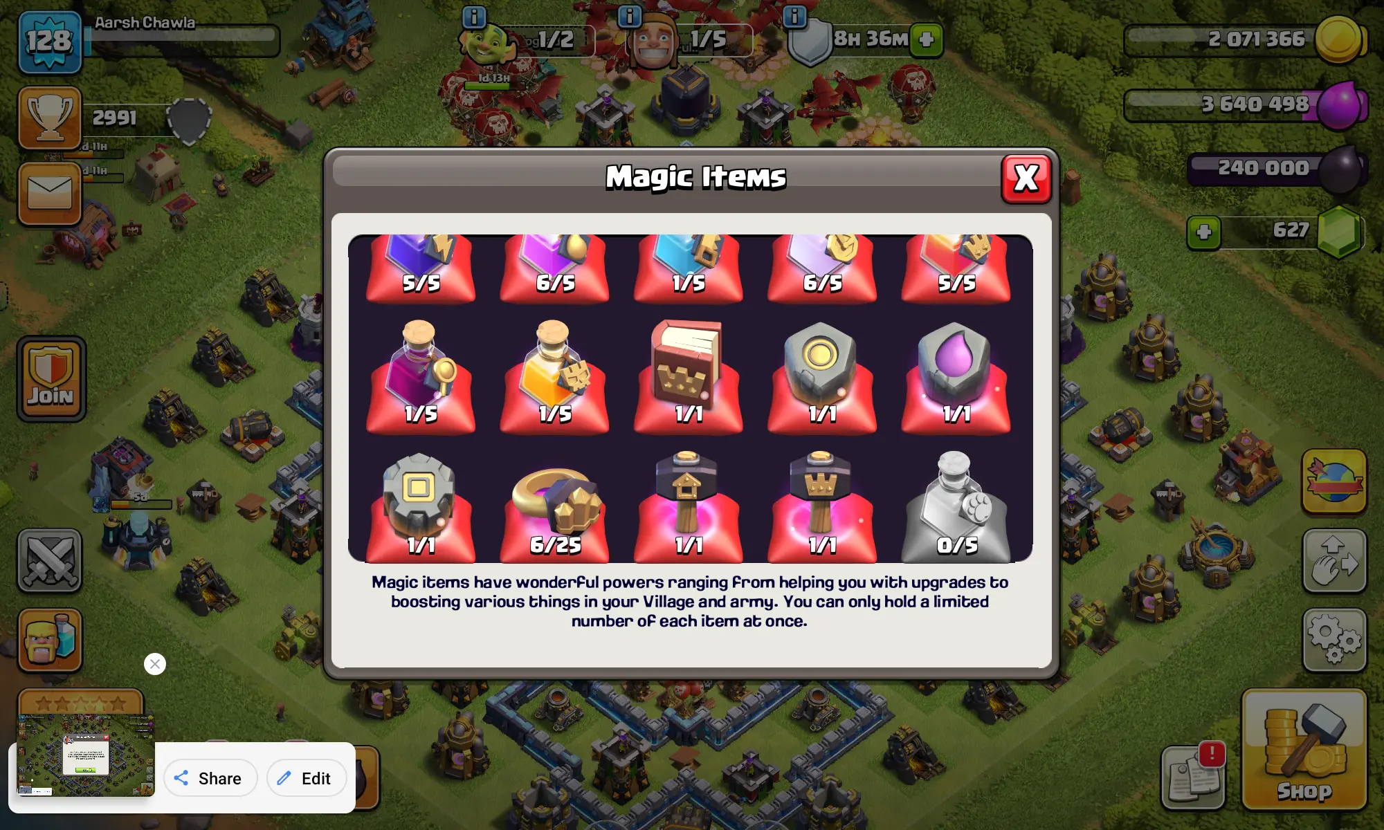 ๐ฆ๐ Blue Wall TH13 Beast ๐ฅ | ๐627 Gems + ๐ Name Change | โ๏ธ Heroes: BK40 ๐น AQ41 ๐น MP11 ๐ GW13 ๐ก๏ธ RC6 | ๐ 3218 Trophies | ๐๏ธ 100 CWL + โจ 100 Raid Medals | โญ 327 War Stars | ๐ Magic Items + ๐ฅ Epic Equipment | ๐ ๏ธ Builder Base Ready | ๐ Instant Delivery โณ |