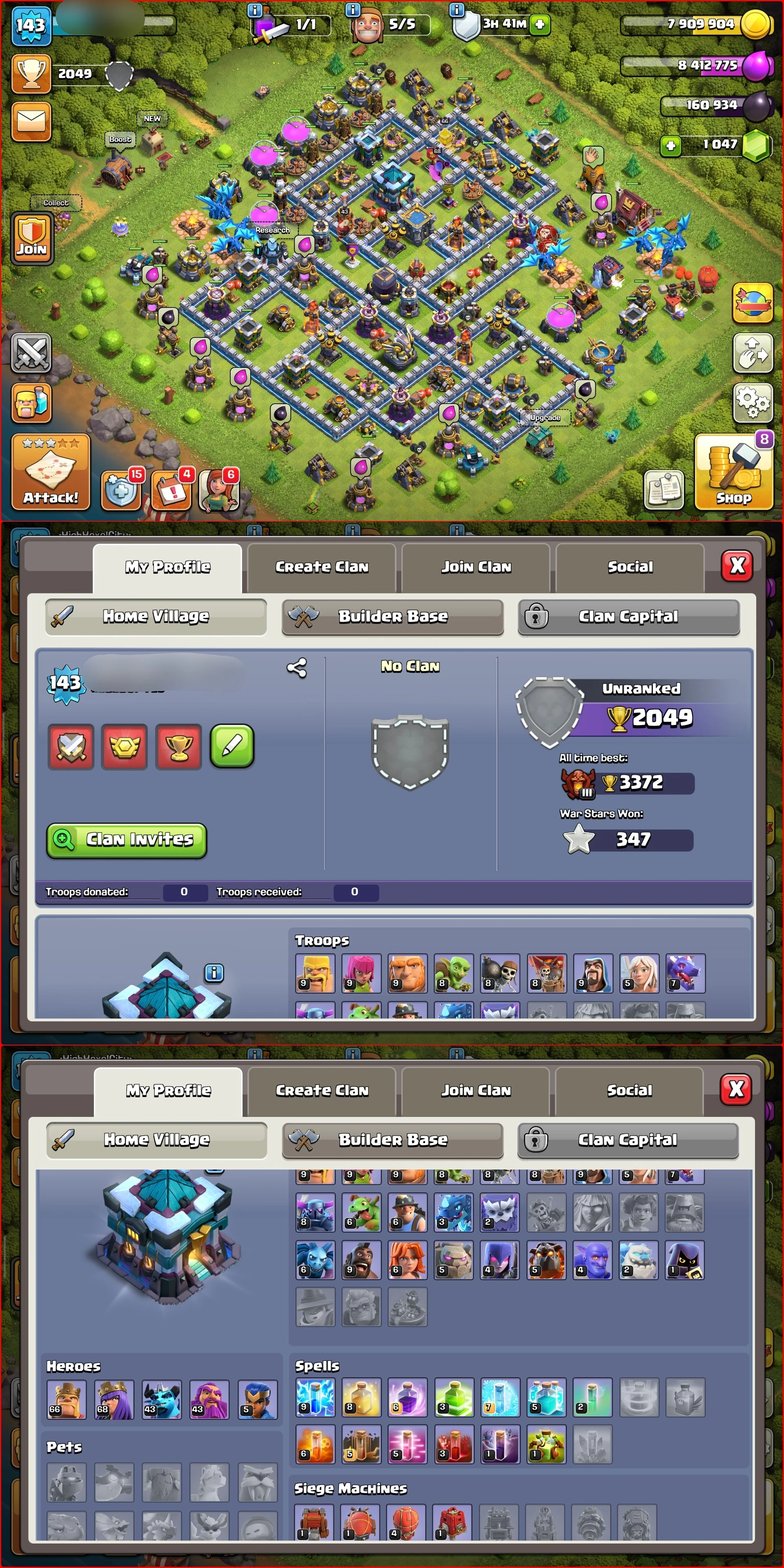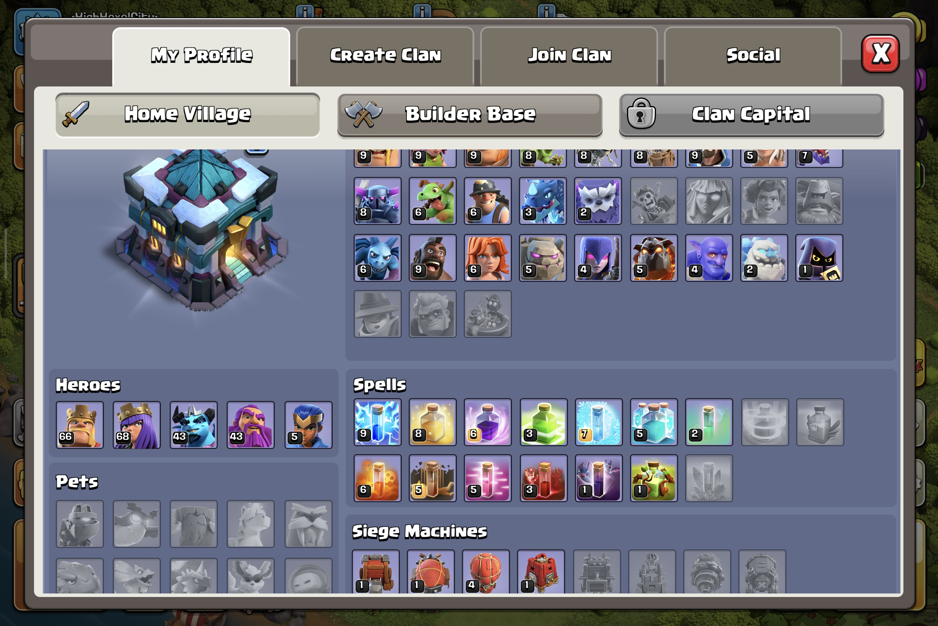 COLOSSAL TH13 SEMI MAX I'D | 67_68_43_43_5 | Lofty Defenses & Troops | Good Hero Abilities + Study BH9 | 1K NC | RB249