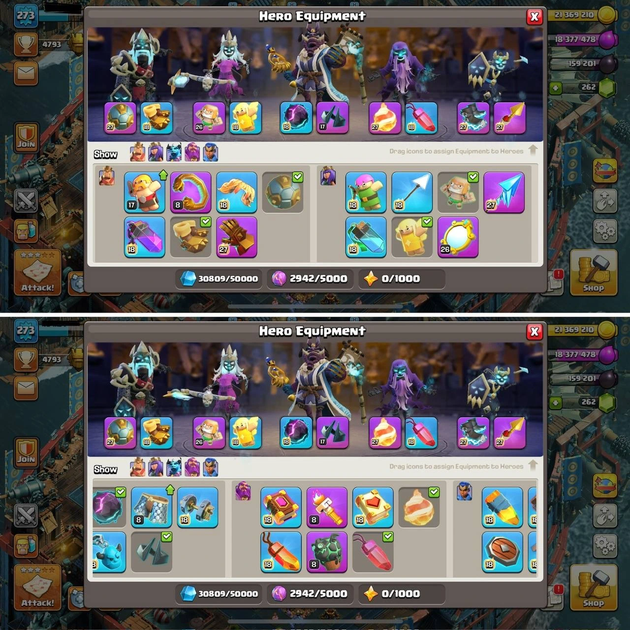 ♻️ 28 EQUIPMENTS MAX ♻️ TH 17 MAX FULL ♻️ 8 EPIC MAX ♻️ 6x SCENERIES ♻️ RARE SKIN SETS ♻️ 5 HEROES MAX ♻️ HIGH WARSTARS ♻️ STACKED ♻️ INSTANT ACCESS ♻️ S09