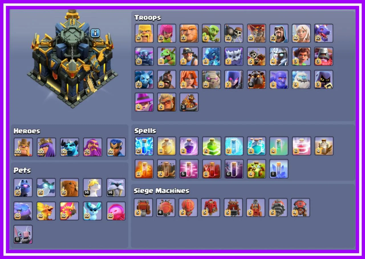 ✨️ (RAREST) ❄️ GLOBAL RANK 96 🎯 8 EPIC EQUIPMENTS MAXED 🌟 FULL MAX TH 17 👑 PURELY MAXED PROFILE 💎 SUPERCHARGED DEFENCES 🔥 277 XP 🎯 ALL WALLS & PETS MAXED 💪 RARE CHAMPION WAR SCENERY 🐉 6318 ATB 🏆 OBSTACLES STACKED 🏅 INSTANT DELIVERY 🚚