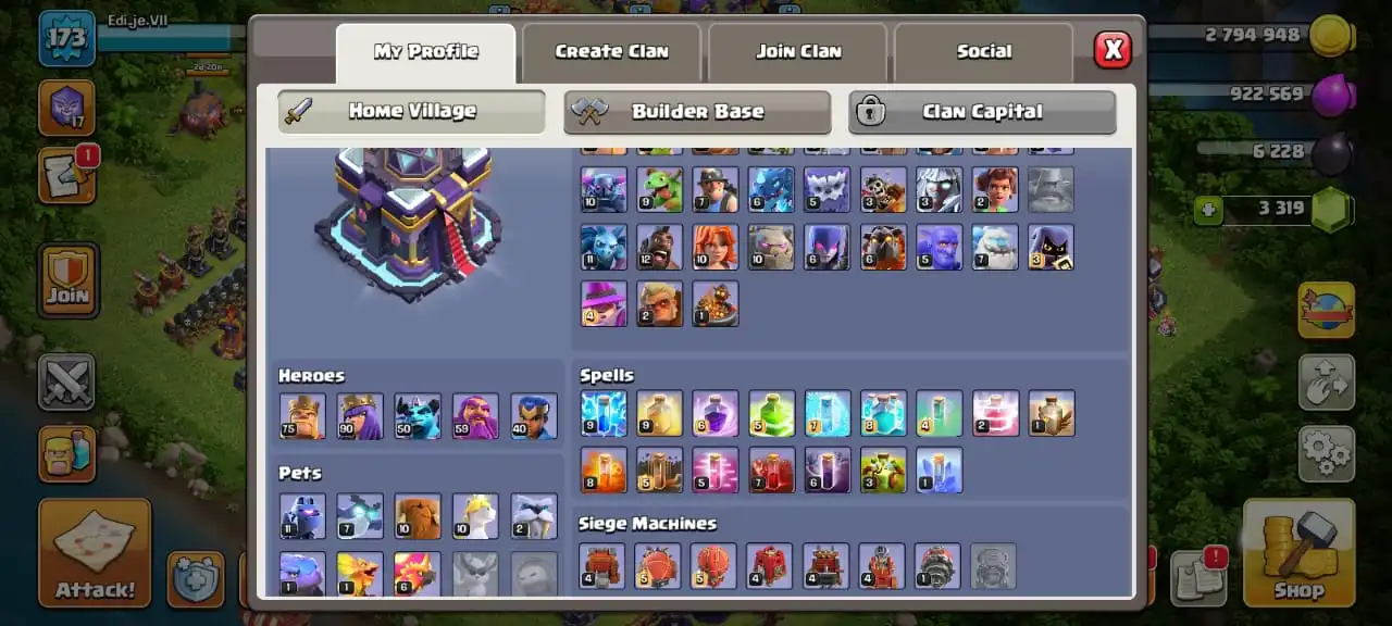 TH 15 max defenseđ„high heroes level 75/90/50/59/40â ïž8 epic equipmentâïž6 builderâsâïž921 cwl medalđ3300 gemsâ