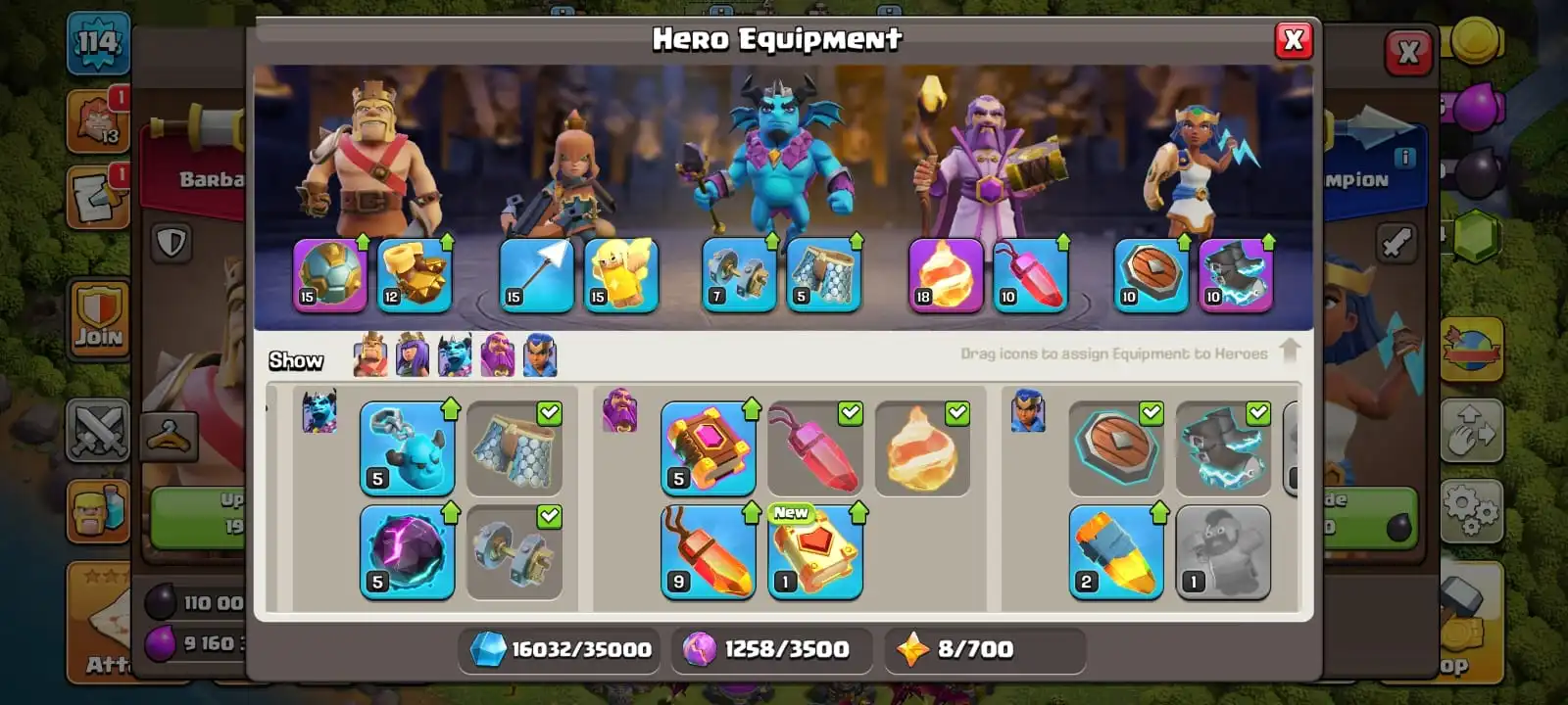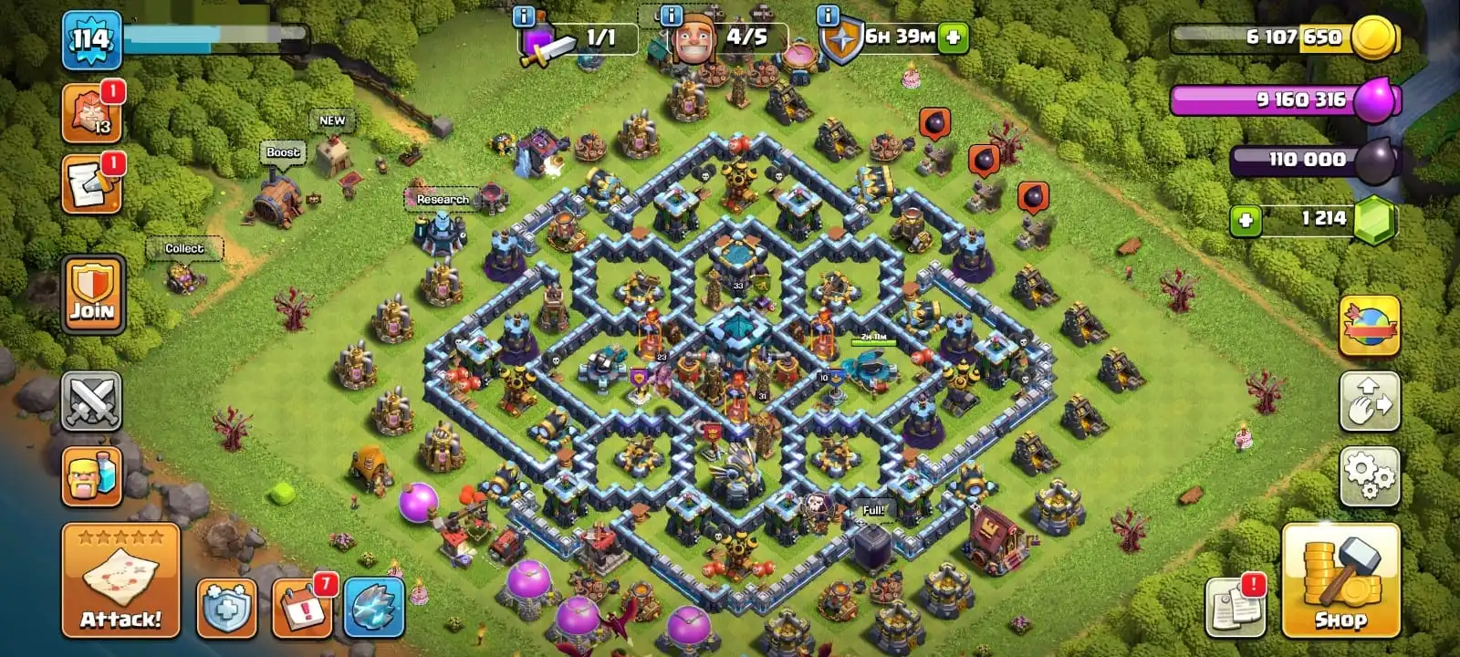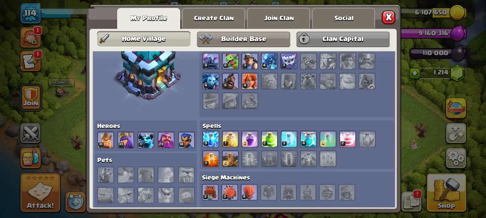 TH 13 ALL MOST MAX🔥FREE CHANGE NAME🔥MENDALS 120🔥HEROES 31-33-17-23-10 GIANT GAUNTLET & MAGIC MIRROR & FIRE BALL & ELECTRO BOOST ON🔥MAGIC ITEMS READY🔥FULL ACCESS ACCOUNT🔥