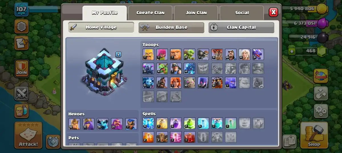TH 13 ALL MOST MAXđ„FREE CHANGE NAMEđ„MENDALS 545đ„HEROES 42-61-36-21-7 FROZEN ARROW & FIRE BALL & ROCKET SPEAR ONđ„CLASH RAMA SCENERYđ„MAGIC ITEMS READYđ„FULL ACCESS ACCOUNTđ„
