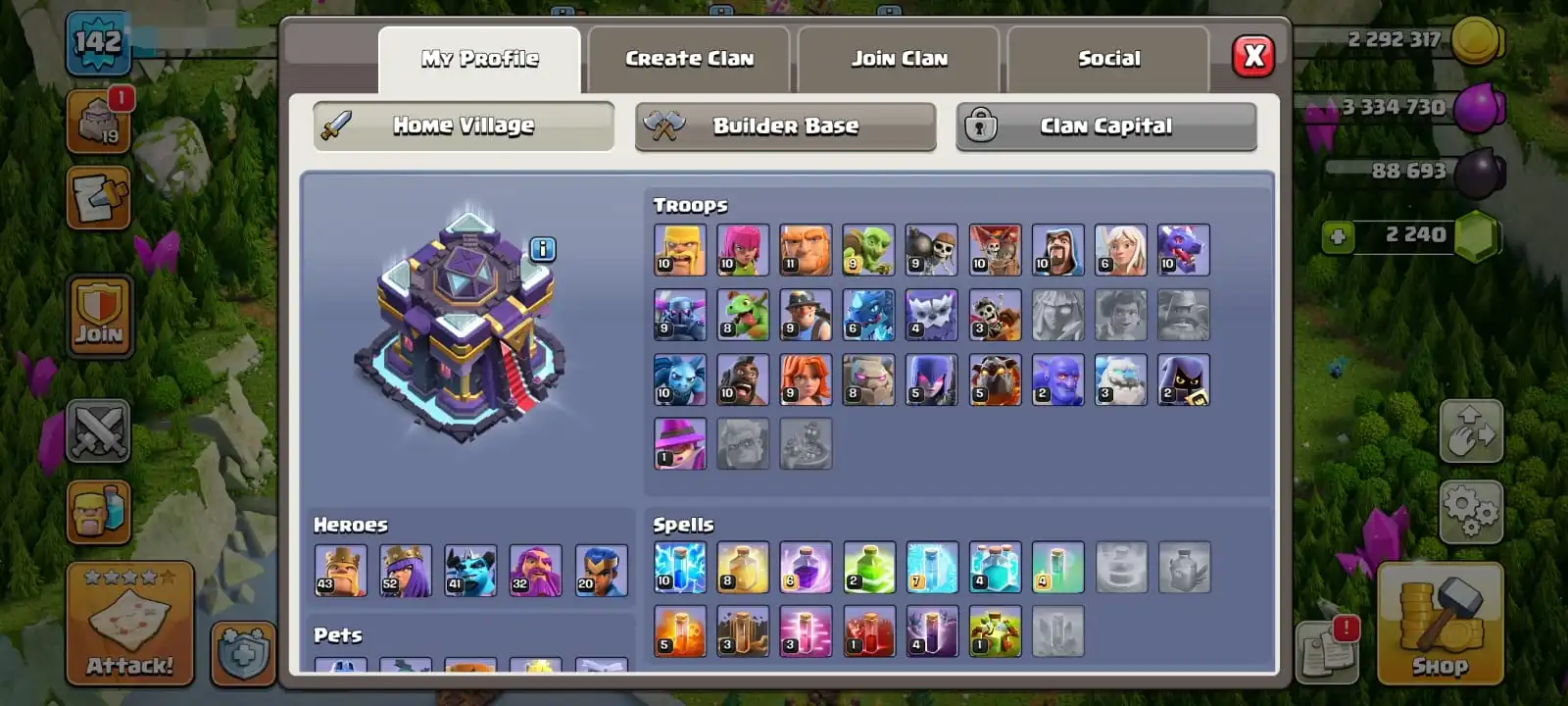 TH 15 SEMI MAXđ„FREE CHANGE NAMEđ„MENDALS 223đ„HEROES 43-52-41-32-20 GIANT GAUNTLET & SPIKY BALL & MAGIC MIRROR ONđ„MAGIC & JUNGLE SCENERYđ„MAGIC ITEMS READYđ„FULL ACCESS ACCOUNTđ„