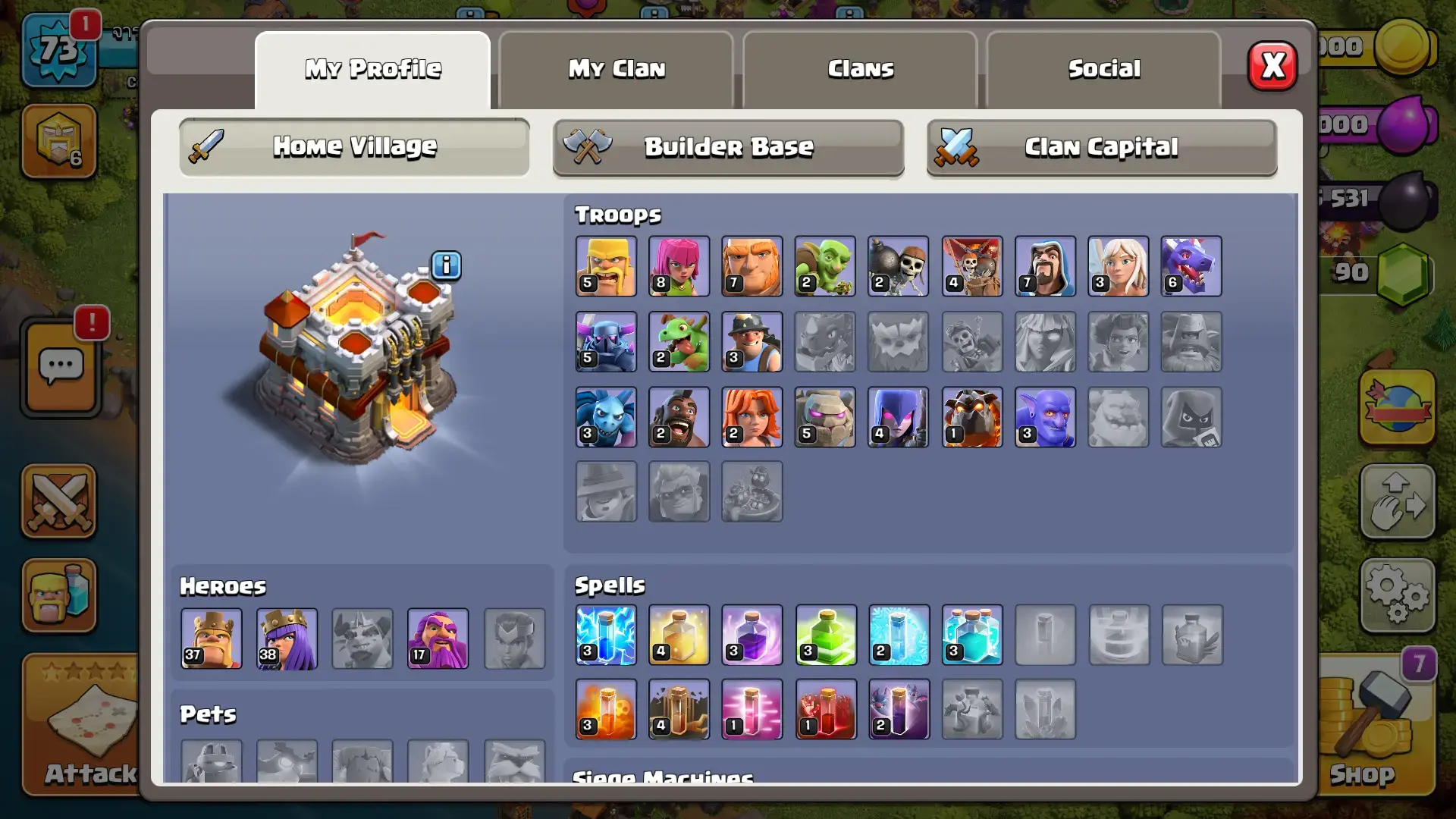 TH11 | 73 LVL | 1740 Trophy | 90 GEMS | 37BK | 38AQ | 17GW| 0RC | FULL ACCESS | IOS/ANDROID (SCREENSHOTS INSIDE)