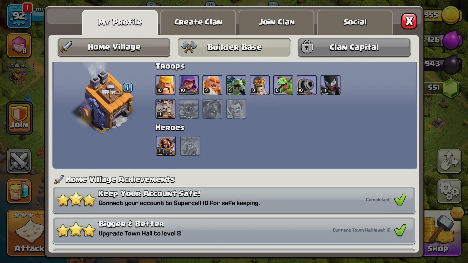 TH12 | 92 LVL | 2209 Trophy | 551 GEMS | 27BK | 27AQ | 19GW| 0RC | FULL ACCESS | IOS/ANDROID (SCREENSHOTS INSIDE)