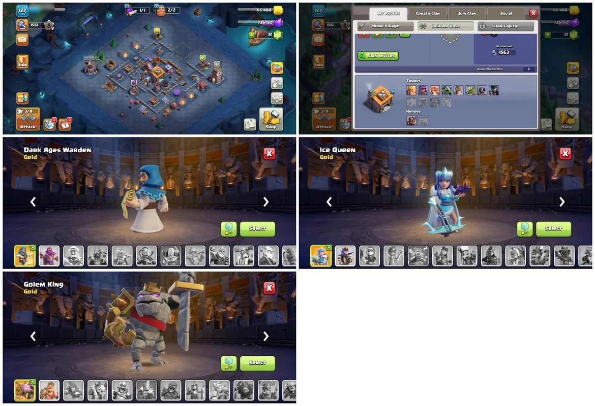 TH13 Semi Max 💷 Level 127 🪄 Heroes 55_49_40_22_16 🗡️ 3 Skins 🏠 Nc 500 Gems (Android & iOS) 🎯 M3591