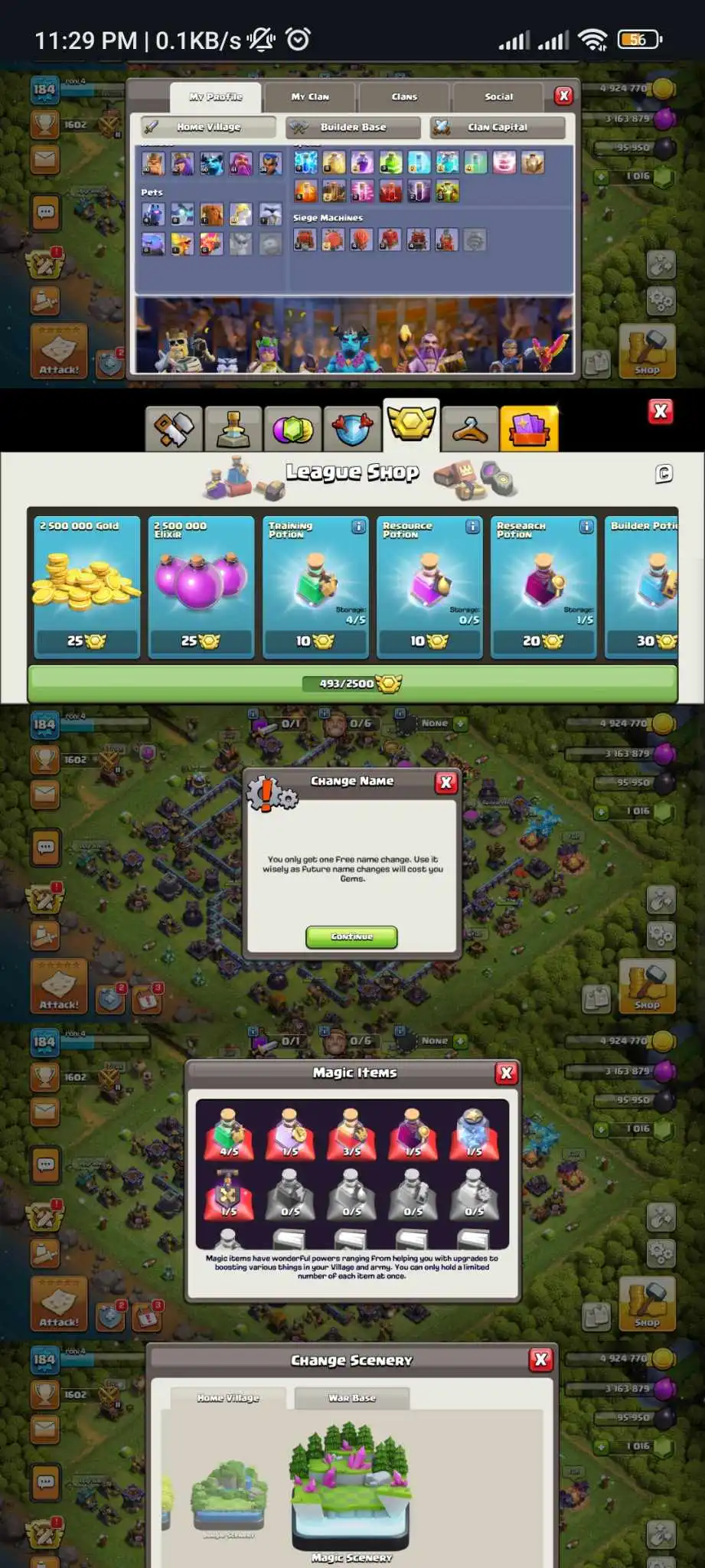 TH15 MAX ID | HERO'S: 80-82-60-61-34 | 7x EPIC EQUIPMENT | MAX WALL | 500+ CWL MEDEL | MAGIC SCENARY | XP-184 | 3 SKIN | BUILDER BASE HIGH
