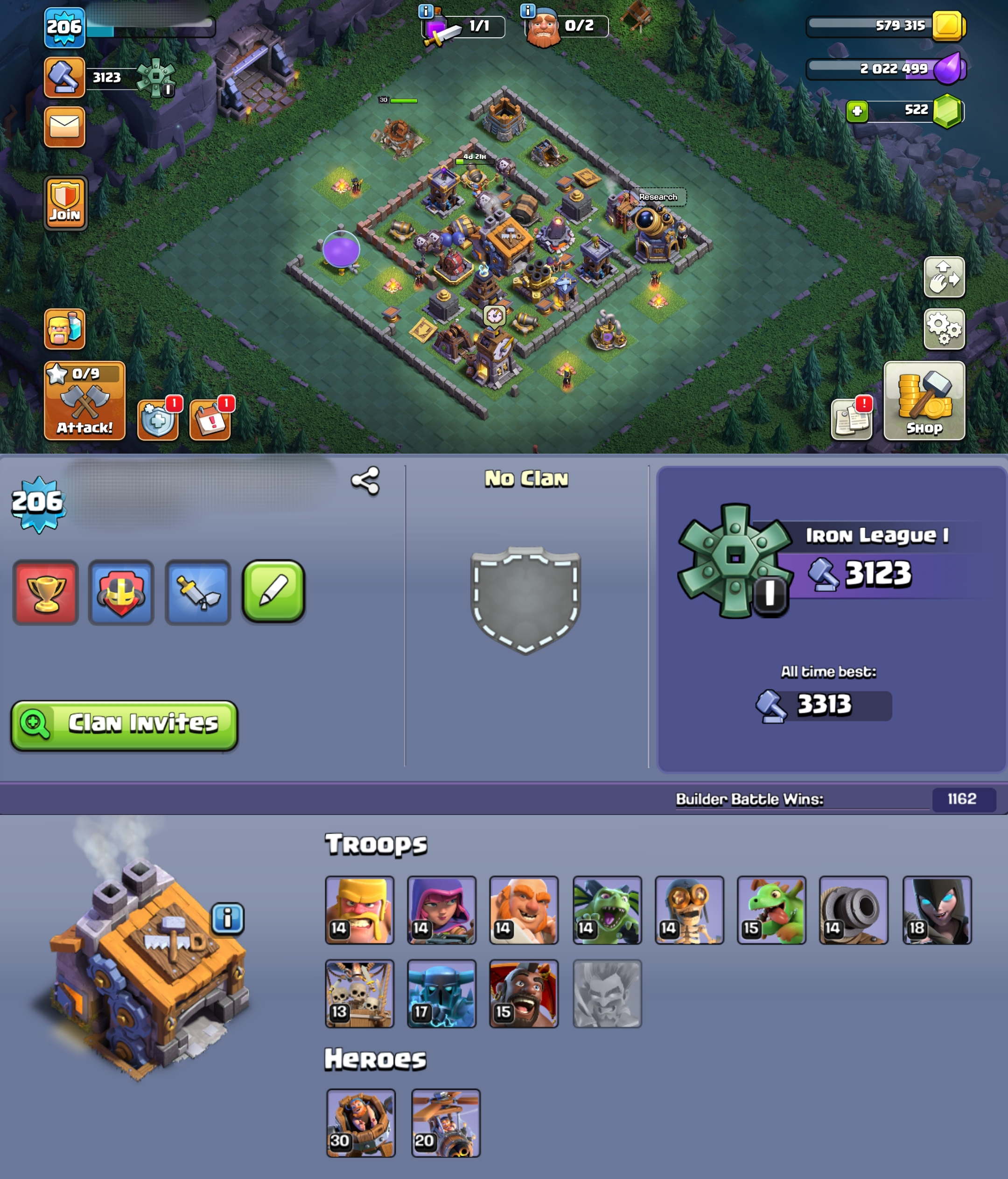 🍀TH15 SEMI MAX ACC ⭐ 6 EPIC EQUIPMENT 🫧 HEROES 63_73_40_52_22🏅206 XP LVL ♾️ OP MAGIC ITEMS 💗 6 OP HEROES SKIN 💎 1127 WAR STAR ⭐ SAFE N SECURE ACCESS 🌟 FAST INSTANT DELIVERY📮