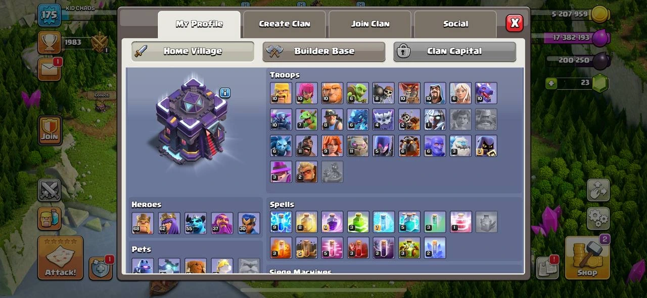 💥 TH15 SUPERMAXED BASE ⭕️ 🛡 HEROES 68_62_55_37 | RC 30 ⭕️ 🧿 FULL HERO EQUIPMENT ⭕️ 🐾 PETS UNLOCKED ⭕️ 🏆 BUILDER TROPHIES 2741 ⭕️ 🎖 XP LVL 175 ⭕️ 💎 23 GEMS ⭕️ ⚡️ INSTANT DELIVERY
