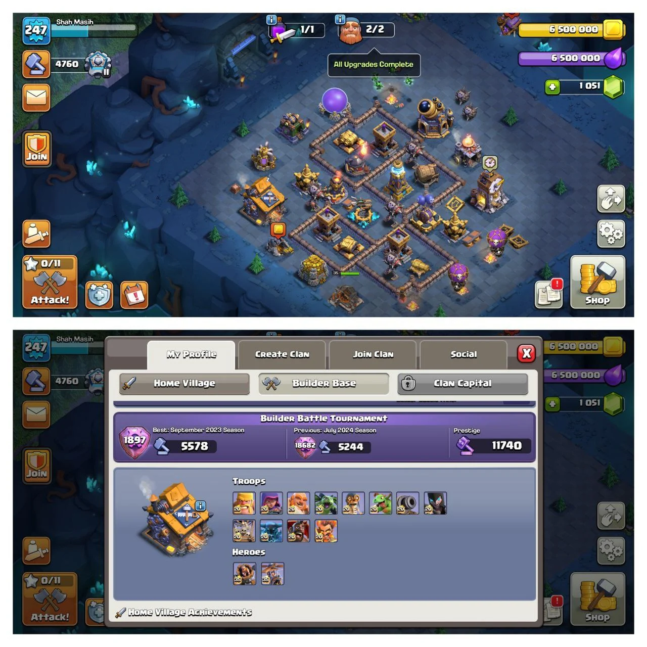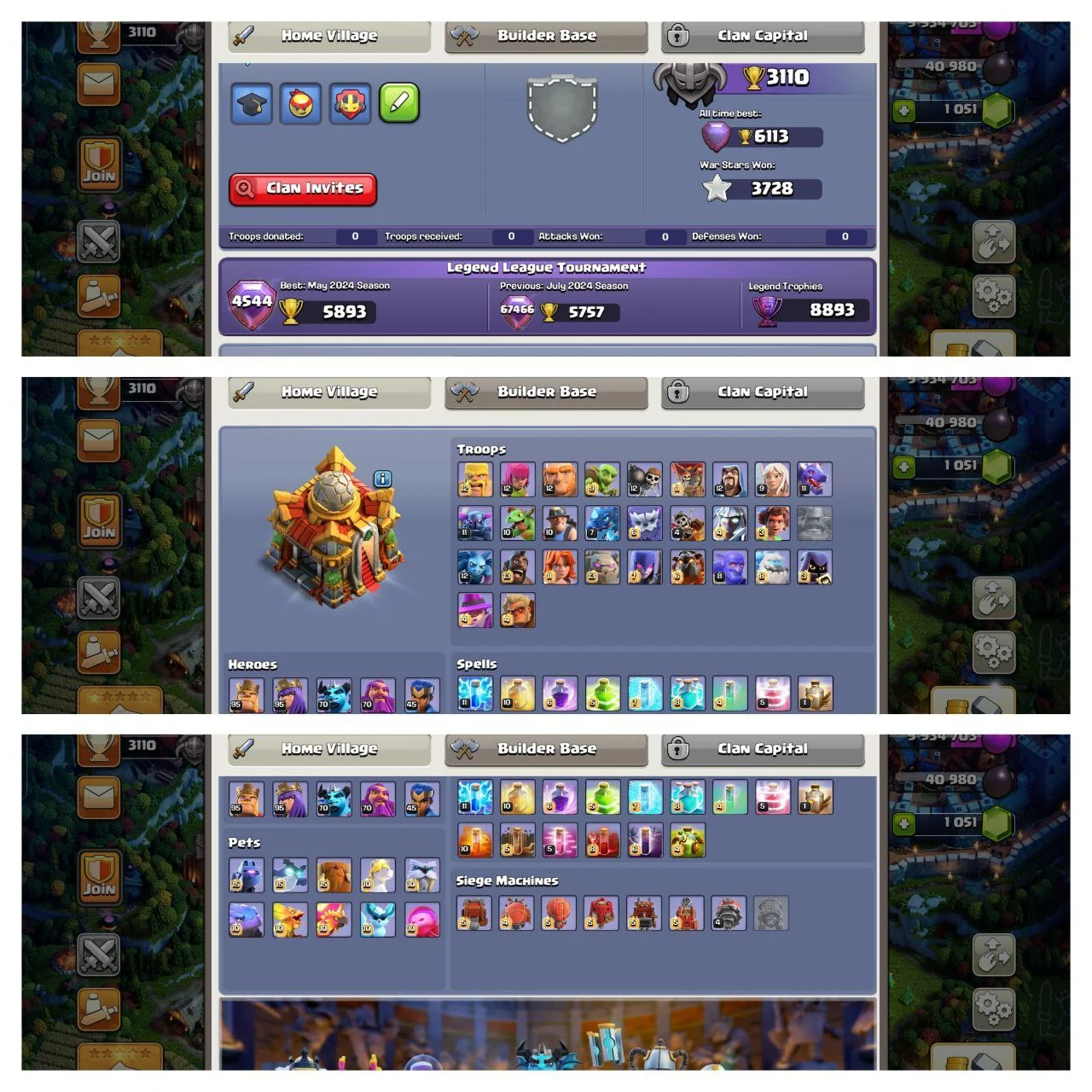 Th16 Full Max☣️Home Base+Builder Base Both 100% Max☣️Superb Epic Equipments ☣️16 Skins+5 Scenary☣️XP-247 instant Delivery【18】