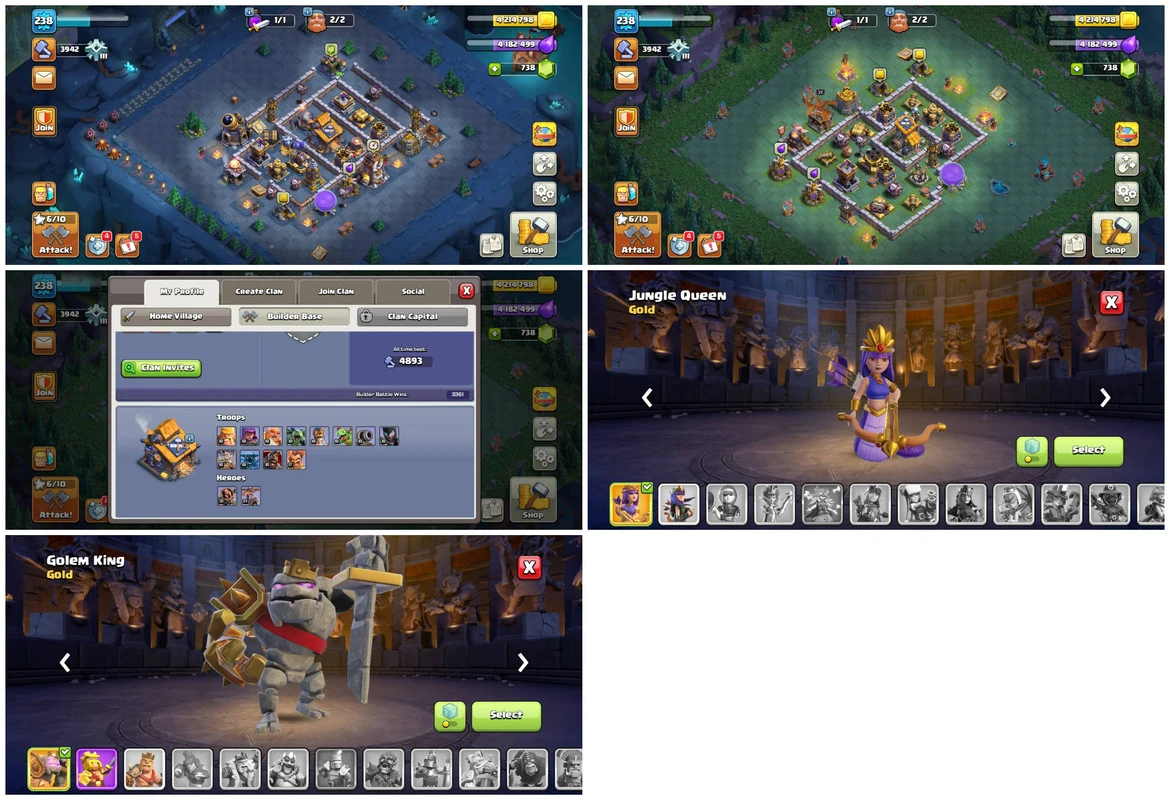 TH16 Good Defence 🧤 Level 238 🎮 Heroes 71_84_60_57_33 🛡️ Gems 738 🏠 3 Skins 👑 2 Epic equipment 🌀 Nc 1000 (Android & iOS) 🧠 M3590
