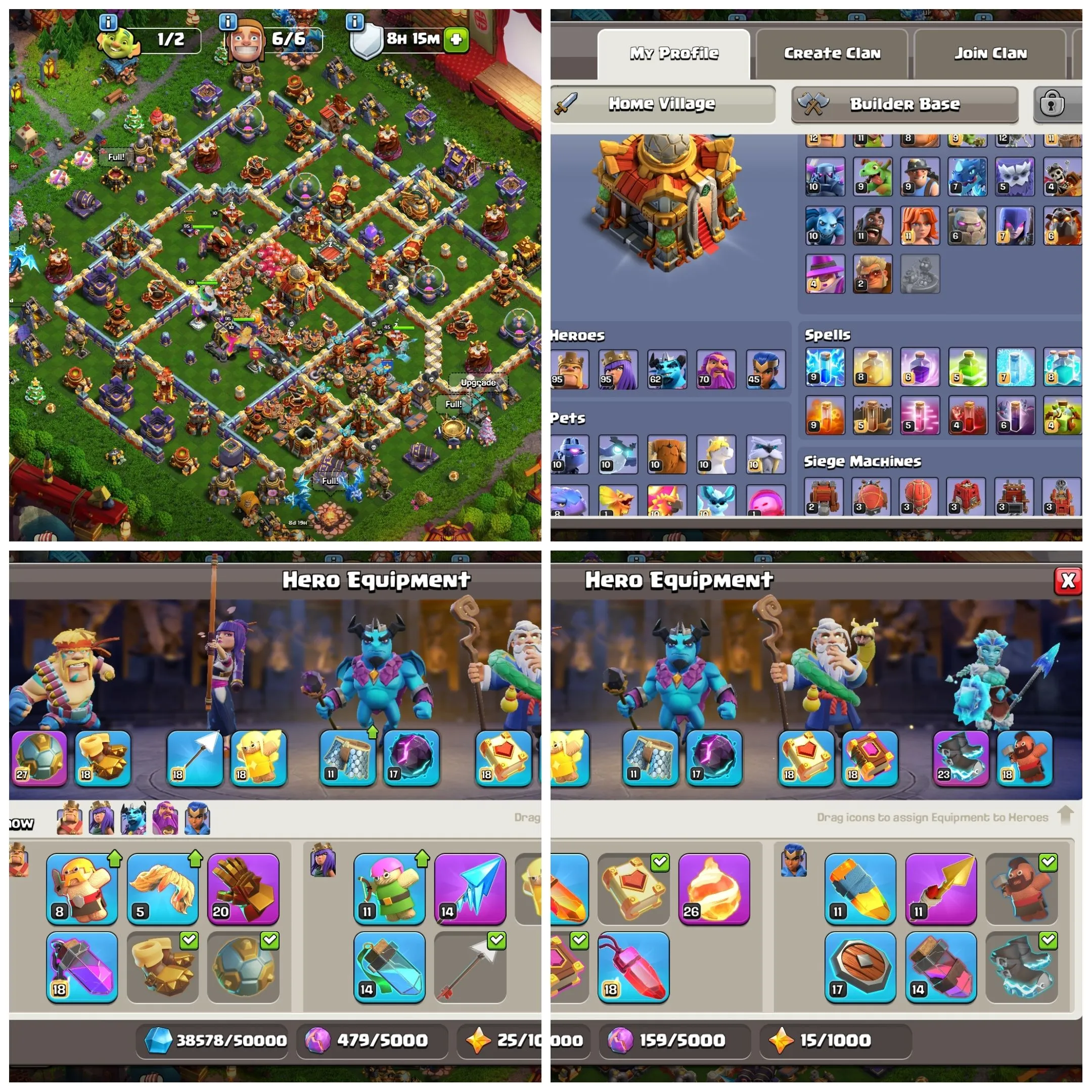 TH16 MAX🔥ALL H ERO MAX🔥5000 GEM🔥HIGH LEVEL EQUIPMENTS🔥INSTANT DELIVERY TO BUYER MAIL
