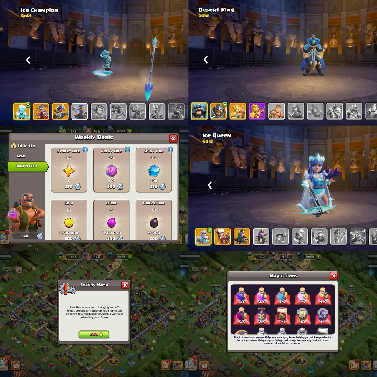 ✦ TH17 Almost Both Side 200% Max ✦ Fire Ball Max ✦ 8× Epic ✦ 240 XP ✦ 60-87-44-51-32 ✦ Hero Skins ✦